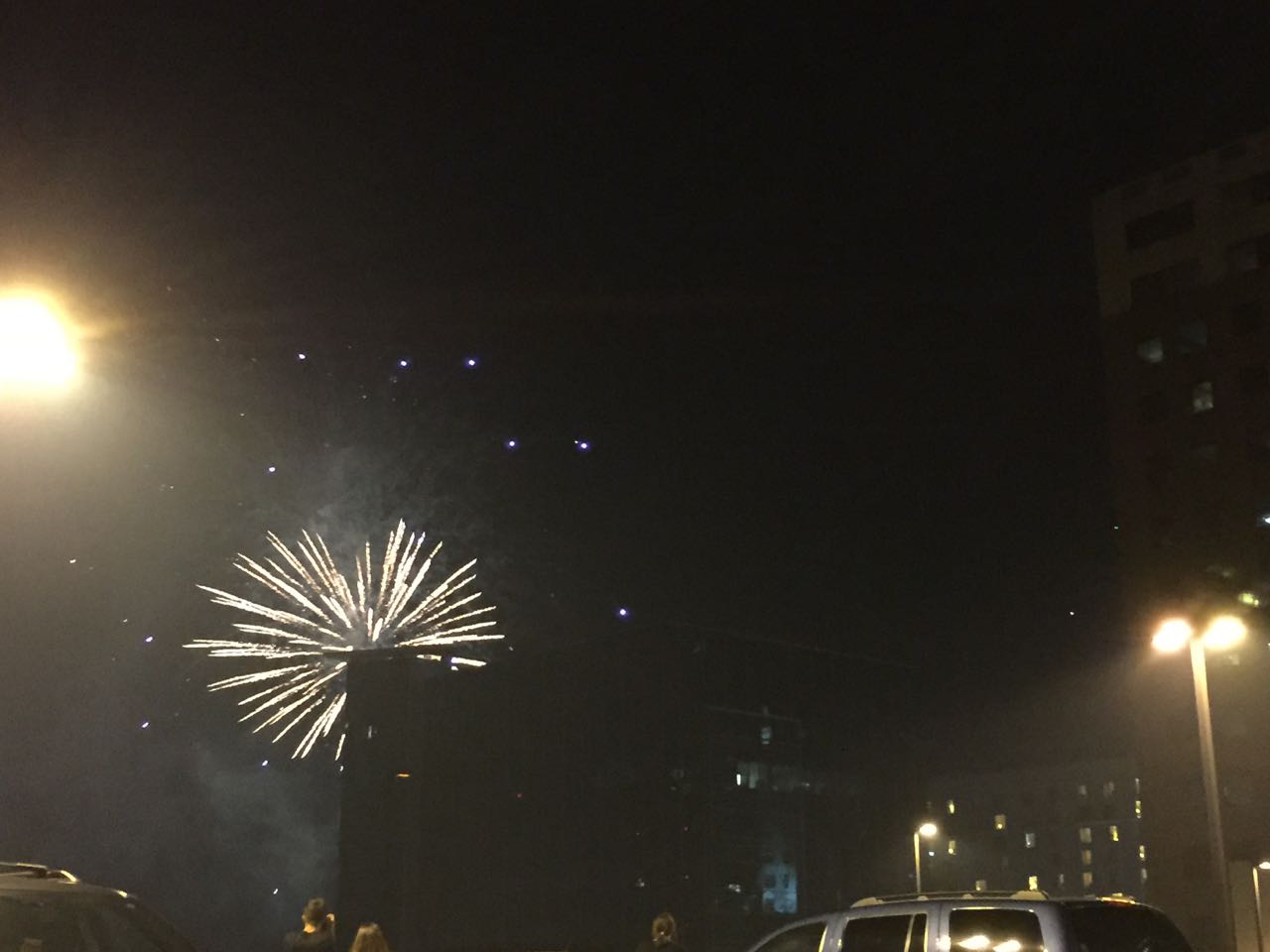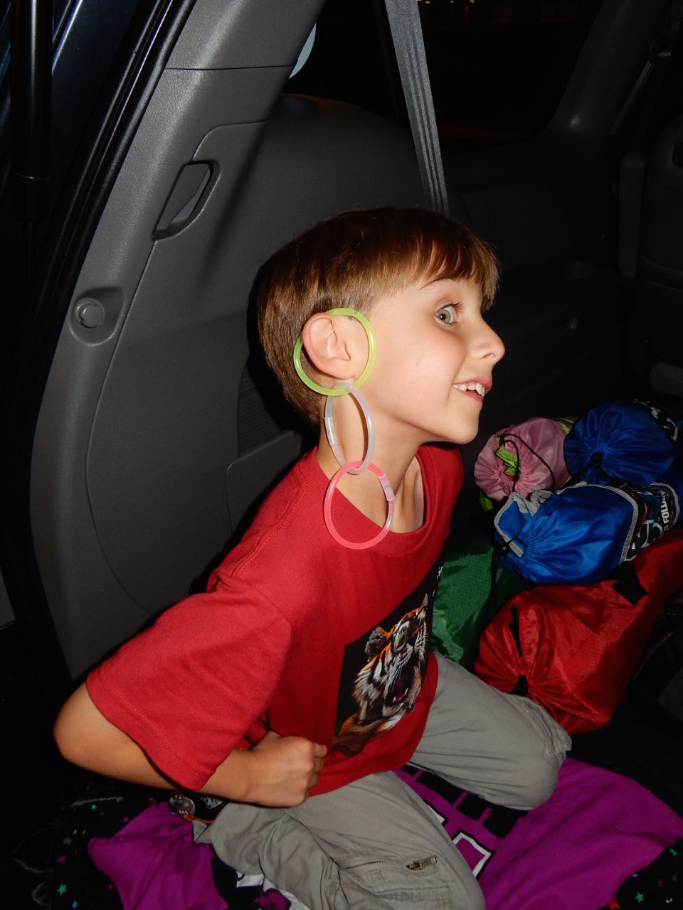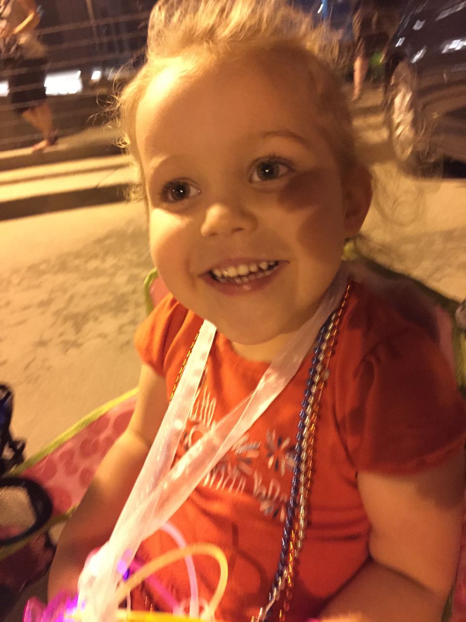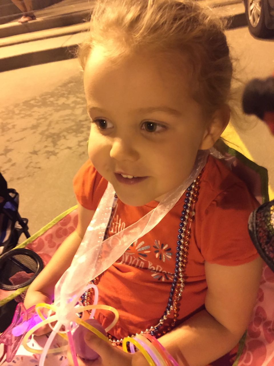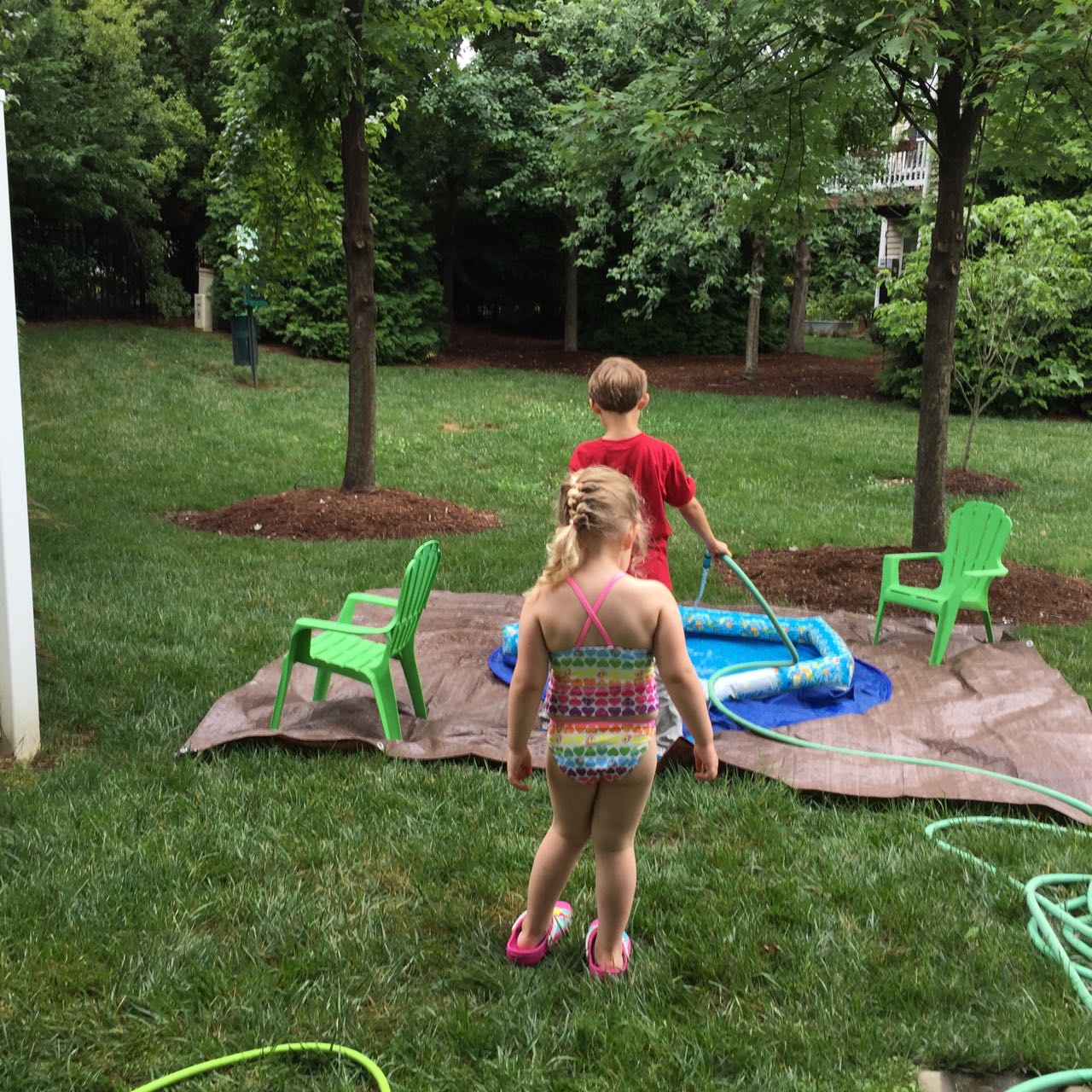Happy 4th of July! The kids had a second round of fun with the kiddie pool in the backyard today. Again it wasn’t quite as sunny or warm as we probably would have liked, but the kids still had a good time. This evening we packed up some snacks and a pile of glow sticks and headed to the parking deck at Red Hat Tower to see the downtown fireworks. We were comfortable “tailgating” in the back of the van as we waited for sunset, and our folding lawn chairs were great seats for the show. The kids go crazy for glow sticks, and Brian loved his glow sword, and Kendall her pink glow wand. Kendall even brought her fairy princess duckie, her favorite prize from her trip to Chapel Hill helping out the scientists. 🙂