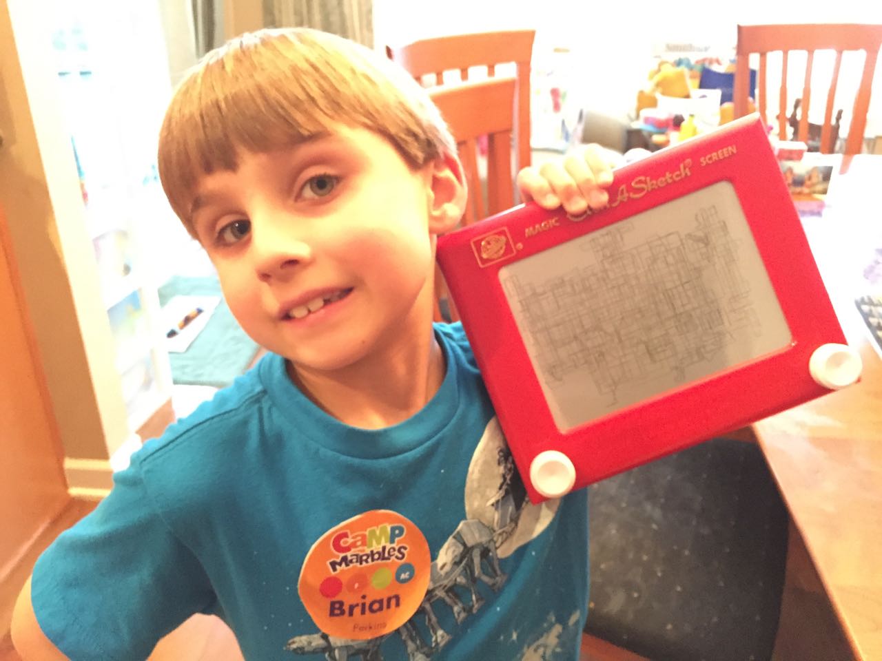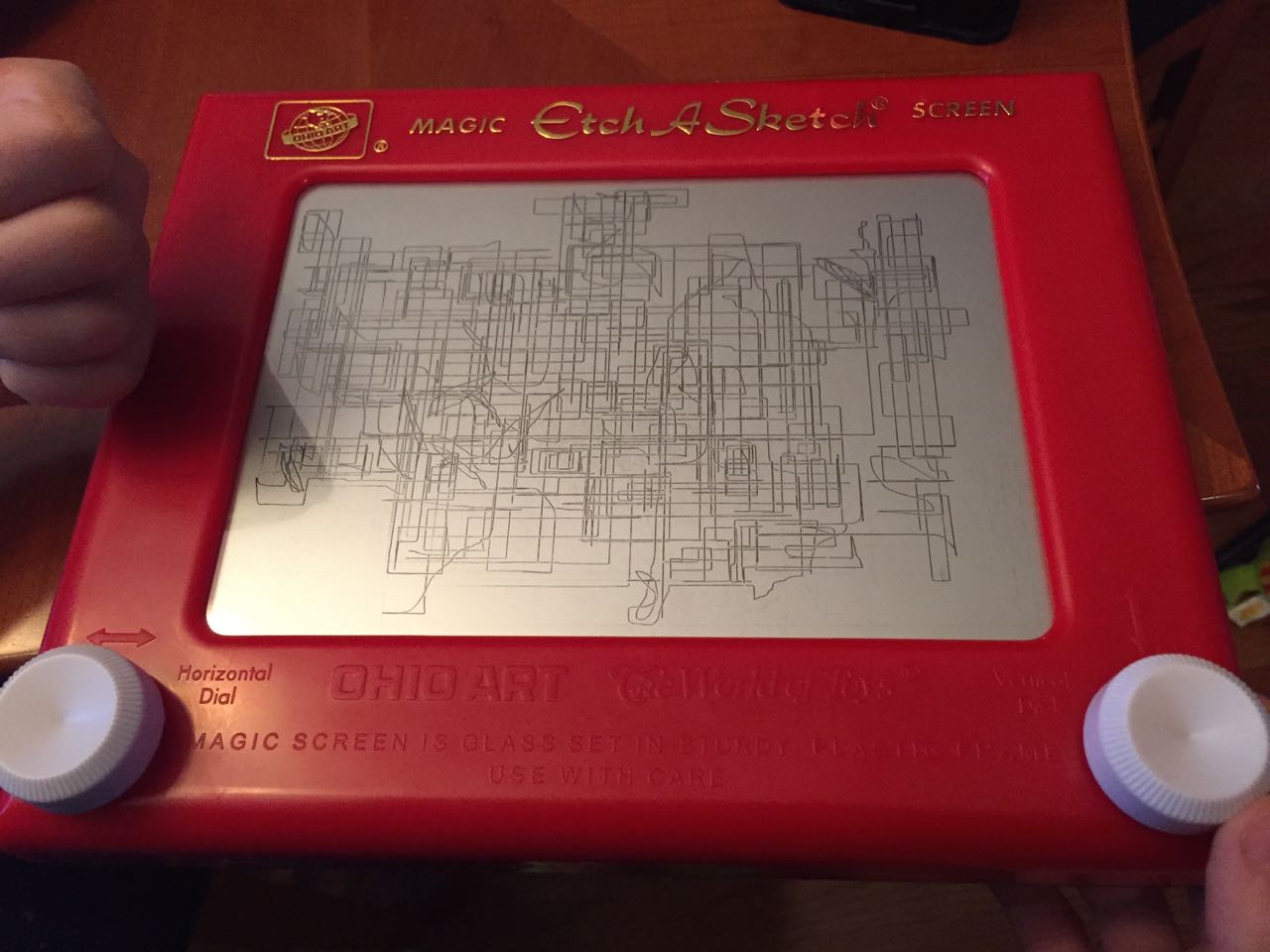 This week was pretty special! We were all excited as the New Horizons craft finally made it to Pluto, and we got to see everyone’s favorite dwarf planet in beautiful detail for the first time. We’d been talking to Brian about it for years, and we were so happy that everything went well with the mission. I got the kids an Etch-A-Sketch this week, I figure it’s one of those classic things that every kid needs. It seems flimsier than the ones we had back in the day, but it works just the same! Getting the kids to share it has been a challenge, but I’m trying to not buy two of *everything*.. We’ll see how long that lasts. 😉 I let Kendall watch some classic “Sailor Moon” episodes with me. I’m not sure now why I did that, maybe because I wanted her to see all the times where crying doesn’t solve the main character’s problems! (I’ve heard from Kendall’s teachers that she’s now saying “crying doesn’t solve your problems!” at school!) In any case, Kendall loves the show and asks to watch it all the time, and she loves doing Sailor Moon’s famous catch phrases and transformation poses–“Moon Prism Power Make Up!” “I’m Sailor Moon, and in the name of the Moon, I will punish you!” Hilarious. 😉 Also included, a pretty amazing double rainbow over Red Hat photo that a coworker tweeted from his downtown high-rise home during an afternoon thunderstorm. I bet the marketing folks loved that!