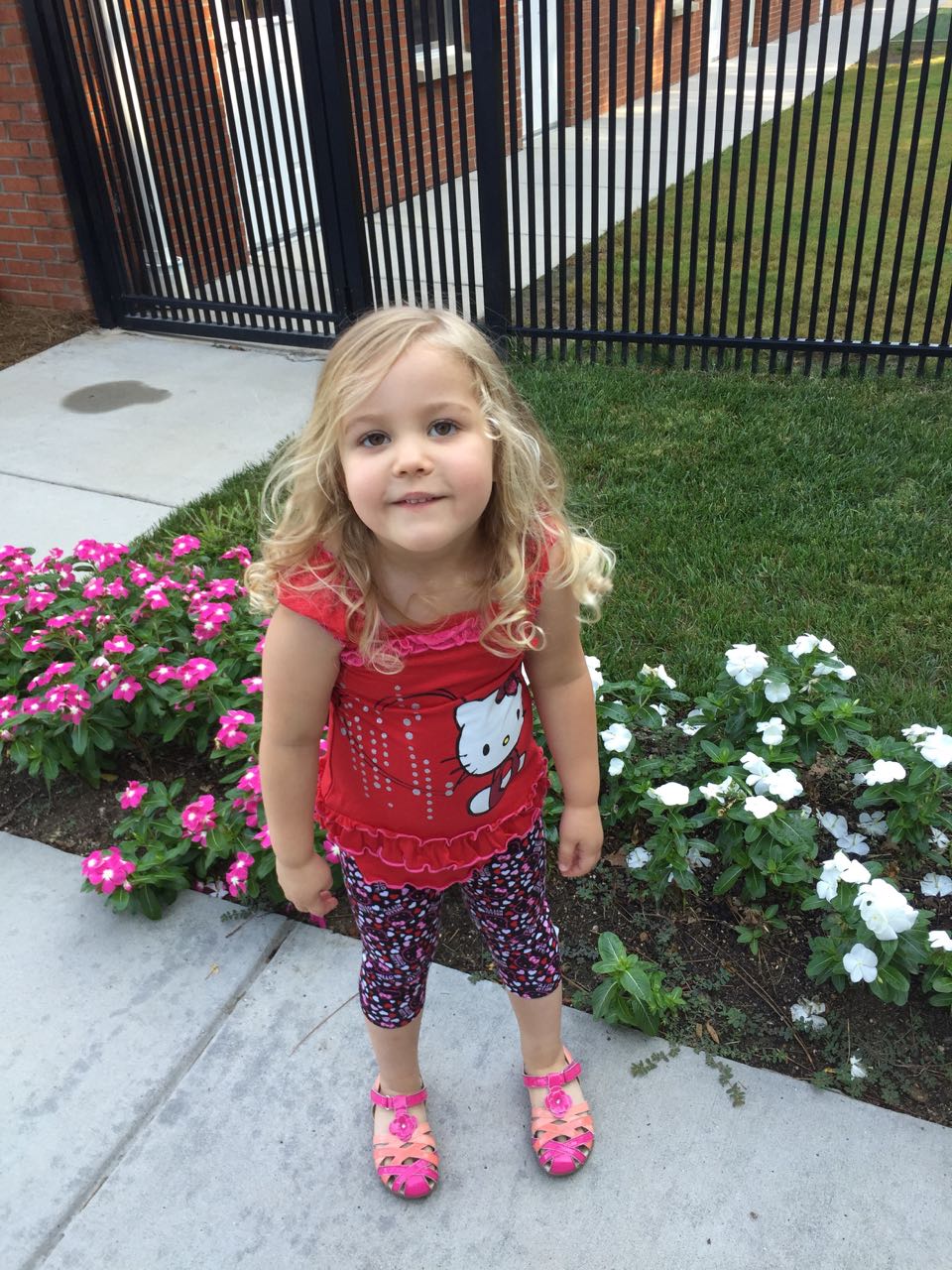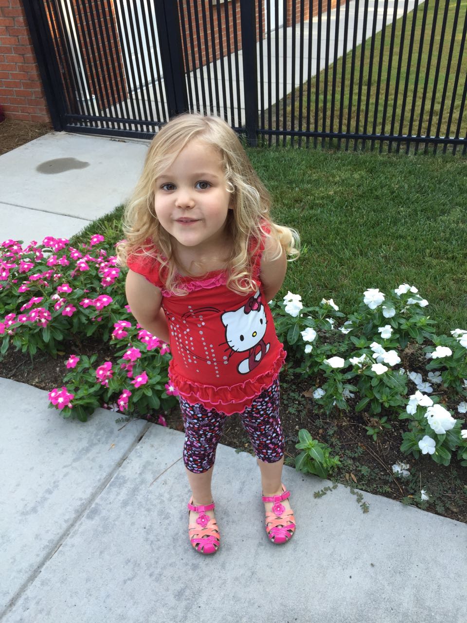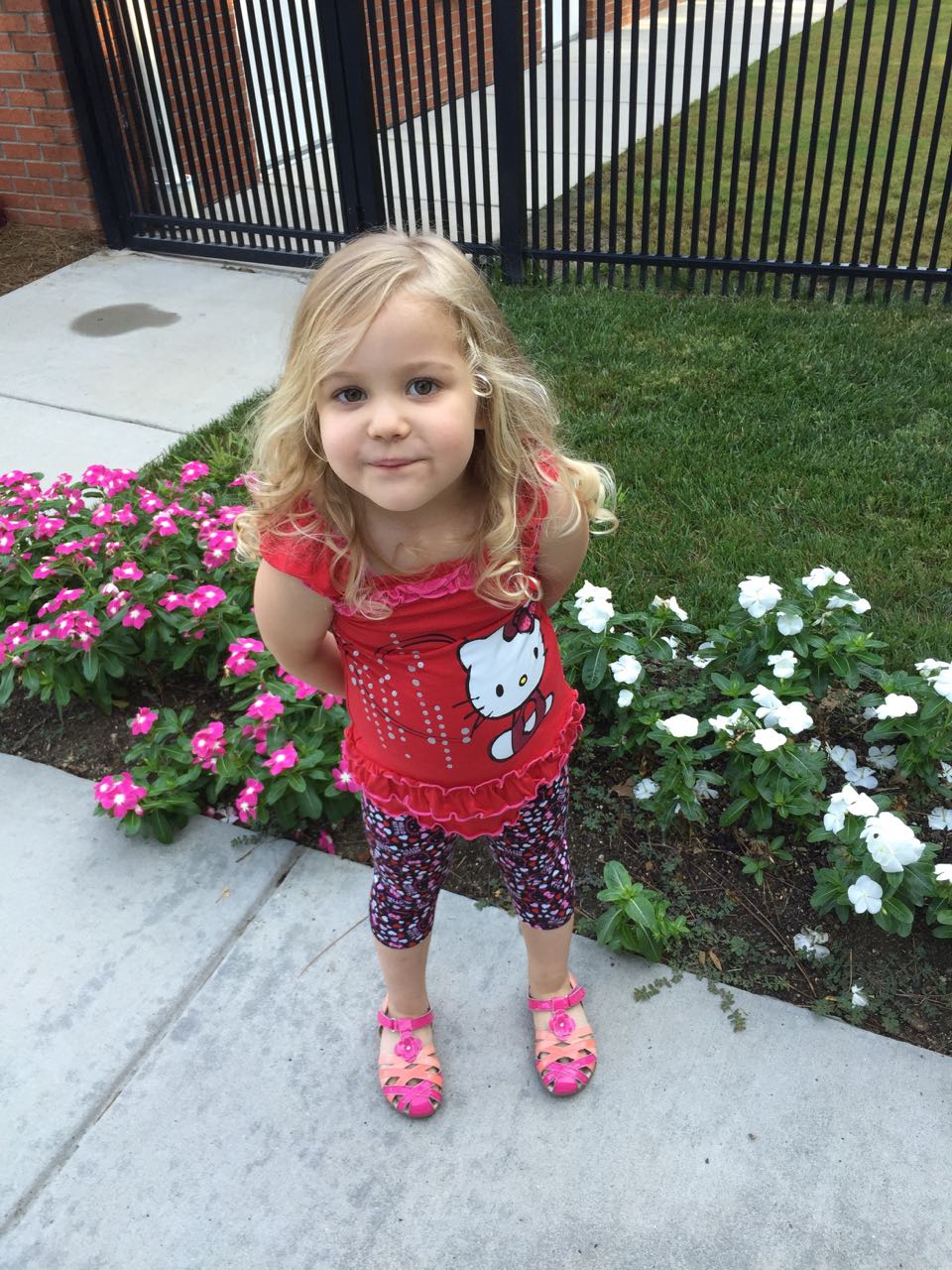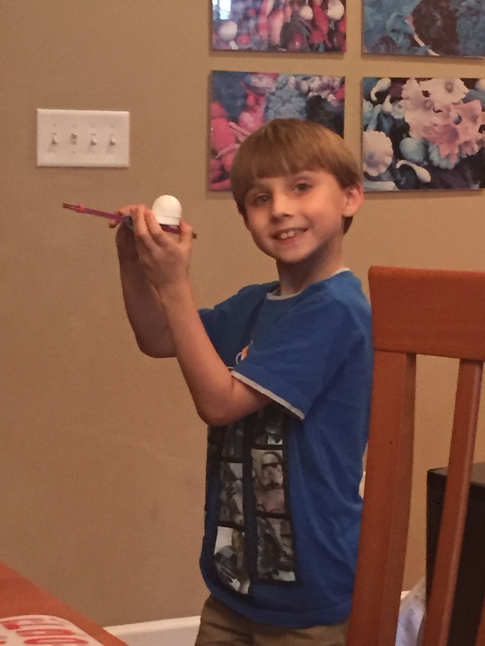 Kendall was looking so cute in her Hello Kitty outfit yesterday! 🙂 Today Brian came home from camp with a little catapult he’d made. He was quite proud of it! Kendall had her mermaid driving her pink car at breakfast time. So funny. 🙂