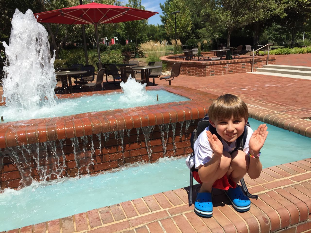 Whew, what a week it’s been.. Last Sunday, Brian had his reading class, and things seemed mostly normal.. Until our fridge died. Ugh! Brandon and I missed some of our family dinner time as we went to Sears and quickly bought a new fridge before closing time. It was delivered on Wednesday, sometime after 11:30pm–yikes! Those guys gave new meaning to being behind schedule–they were supposed to show up at 4pm. The kids were disappointed they didn’t get to see it installed when they got home from school, but mischievous Brian was up late, and got to see the delivery truck unpack the new fridge and cart the old one away from his window. The new fridge sure is big and shiny. The kids like it a lot, except that magnets won’t stick to the front of it! 🙁 Brian had Artspace camp this week, although he almost didn’t–the circus-themed camp he was enrolled in was cancelled due to lack of participation, but they let him join the older kids’ class, which was puppy/dog themed. Maybe this can help Brian get less afraid of dogs? 😉 We let Roxy be his pet-by-proxy, so he brought in pictures of her to work from. He painted a picture of her, which he gave to Grandma Sue. Brian spent the afternoons with Grandma, and we enjoyed getting photos and messages about their adventures. 🙂 I really liked the Viking battle picture he drew. Brandon and I witnessed the end of an era this week, as Jon Stewart retired from the Daily Show–we’ve relied on his “fake news” since college, so we’re feeling the loss..! Kendall entertained us with her songs and wacky gymnastics, silly girl. 🙂