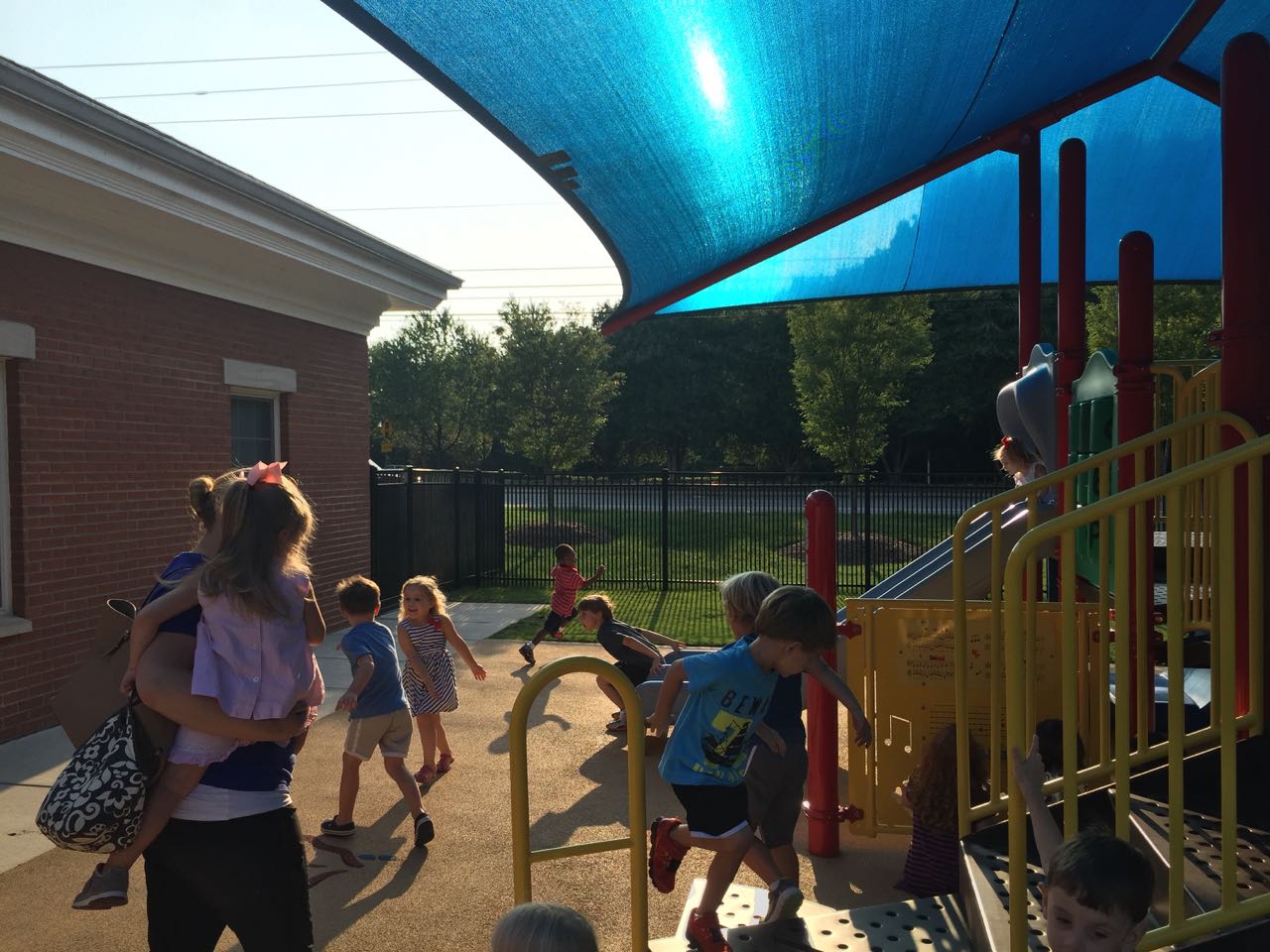 Tonight was curriculum night at Goddard, where us parents got to learn all about what Kendall will be learning this year, and the kids got to play outside on the playground. Brian and Kendall were off and running as soon as they hit the playground! I loved finding the cute photos of Kendall from the day they made s’mores at school. She had told me about that, just bouncing with excitement–and you can see how excited she was in the moment! 🙂 Brandon had to go to the grocery store later, and sent me the photo of all the Halloween candy, already in the store. In August! 😀