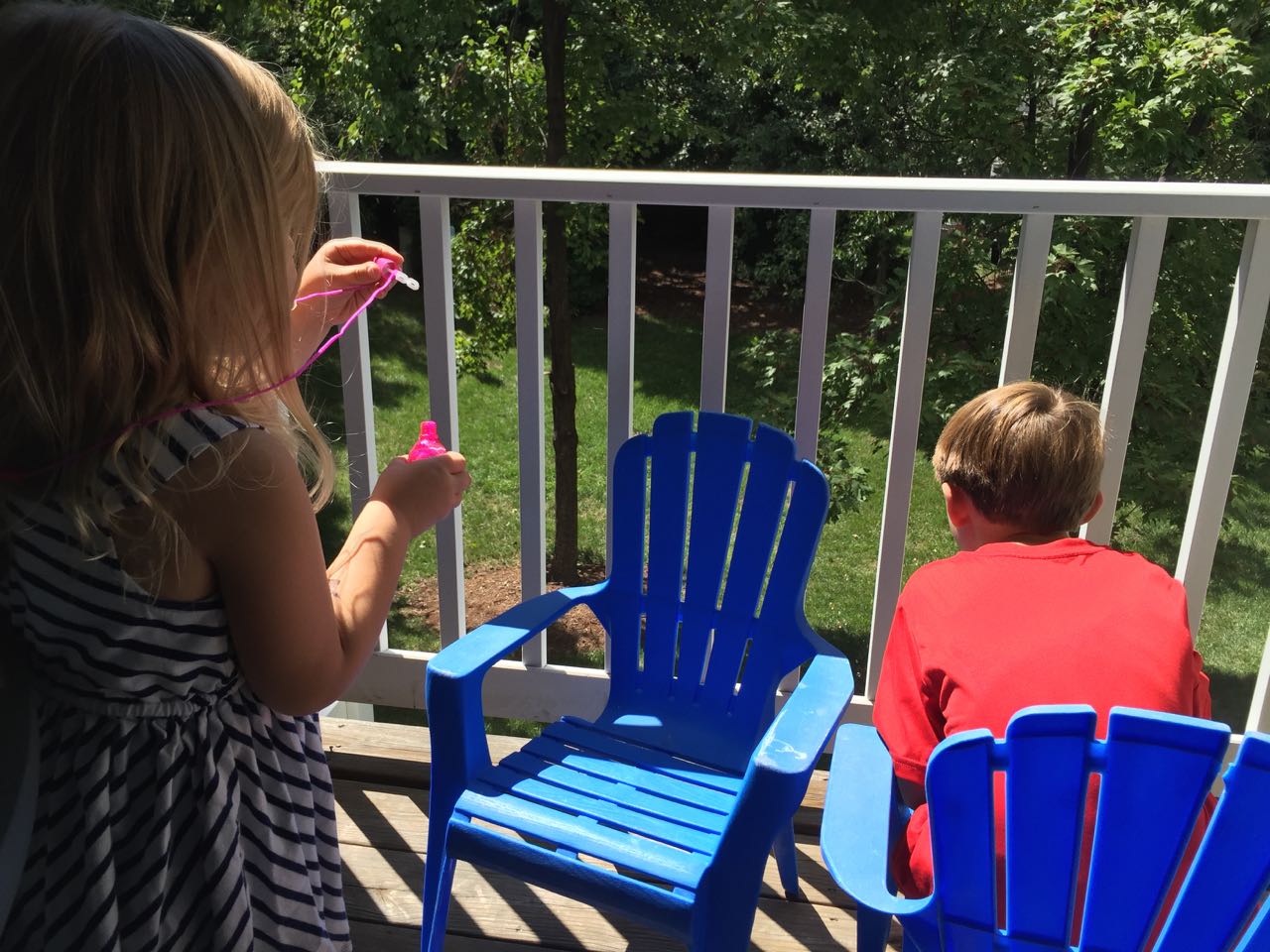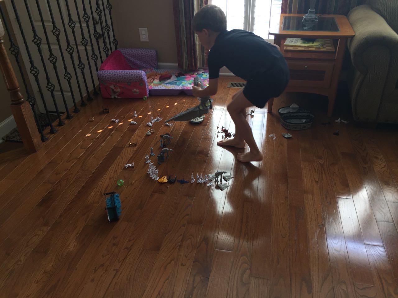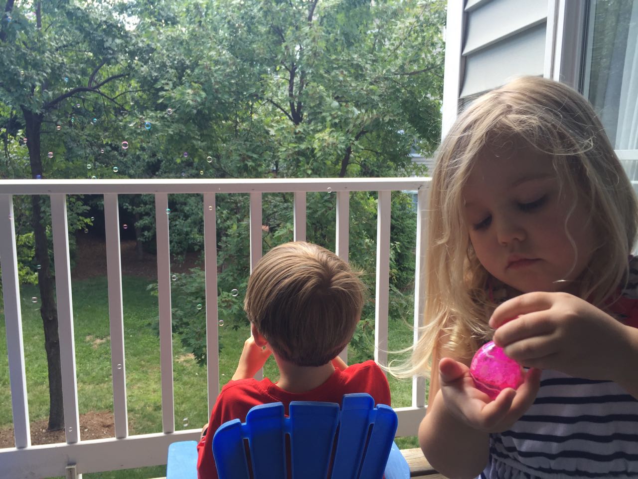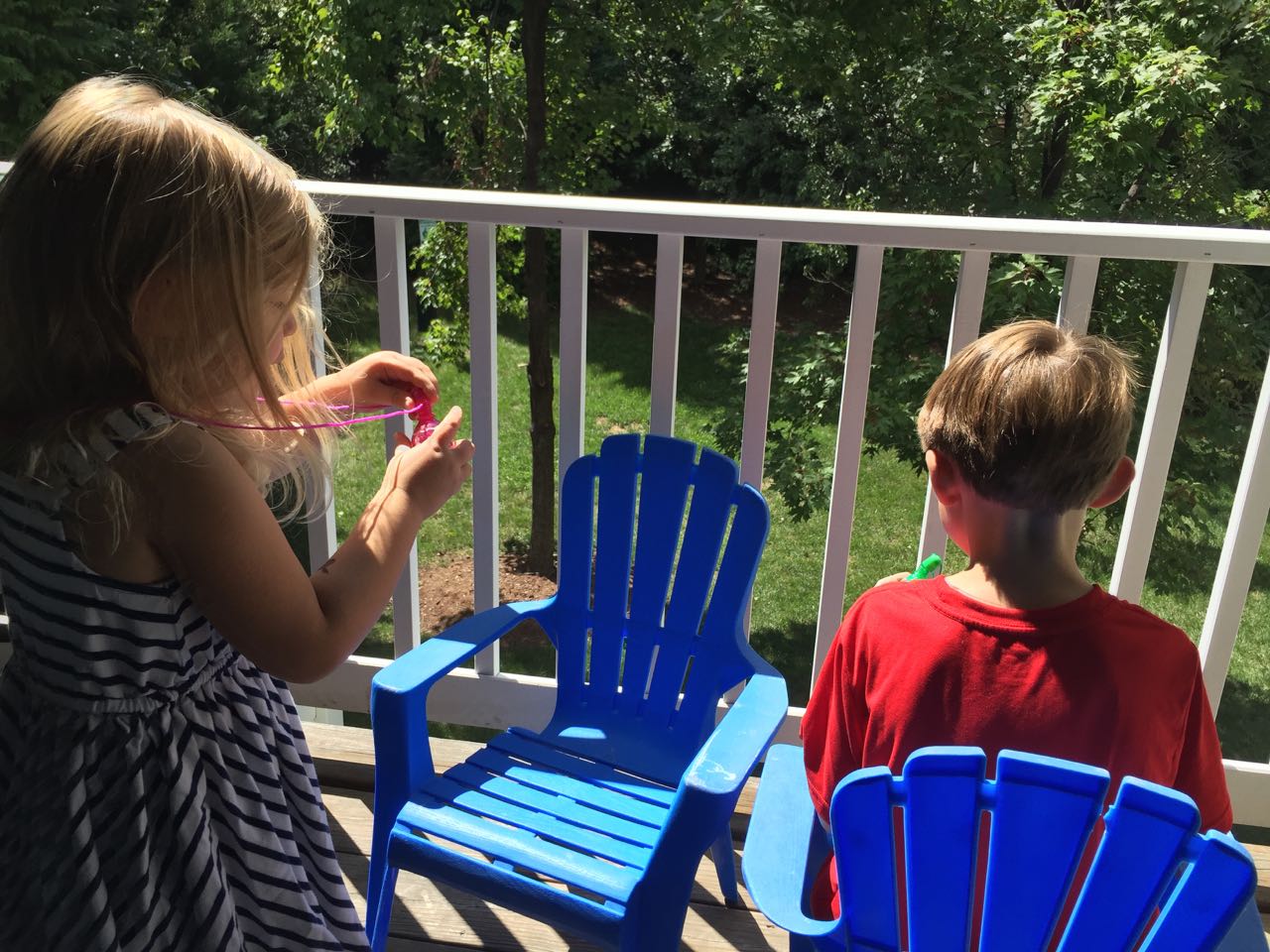 Just a fun Sunday at home..! Today the kids used all the broken crayons to melt down into rainbow crayon cupcakes. They had fun choosing their color combos, although we learned that crayon quality varies widely, which affects the quality of the blend. The majority of the broken crayons were cheap restaurant crayons, and yeah, they are mostly just wax, not a lot of pigment. Still, it was a fun activity. 🙂 The kids also amused themselves with Duplos and Brian’s new Star Wars Command toys (like little army men, but Star Wars characters) and this afternoon, we played with bubbles on the porch, and Brian played catch while Kendall had sandbox time in the back yard.