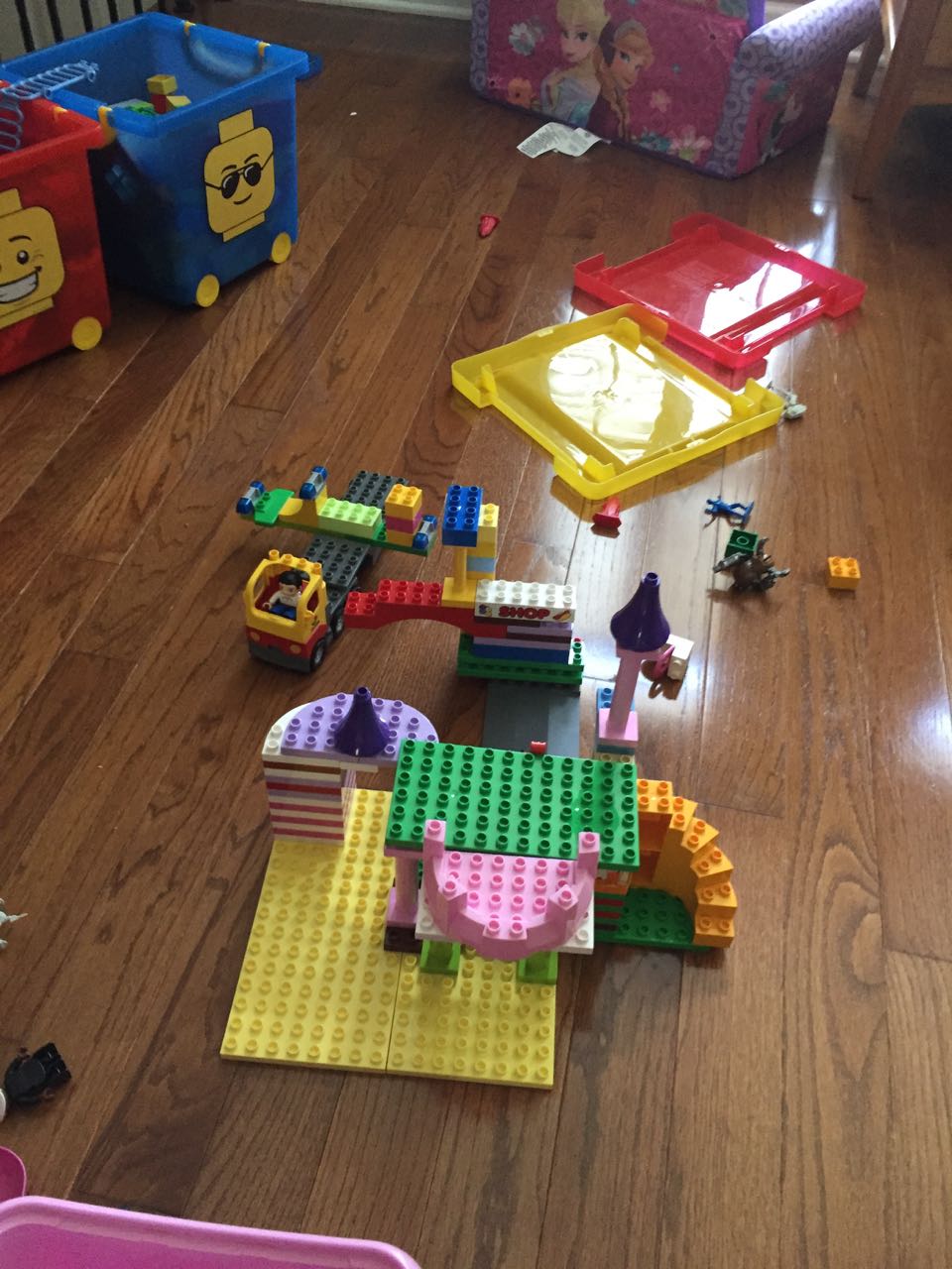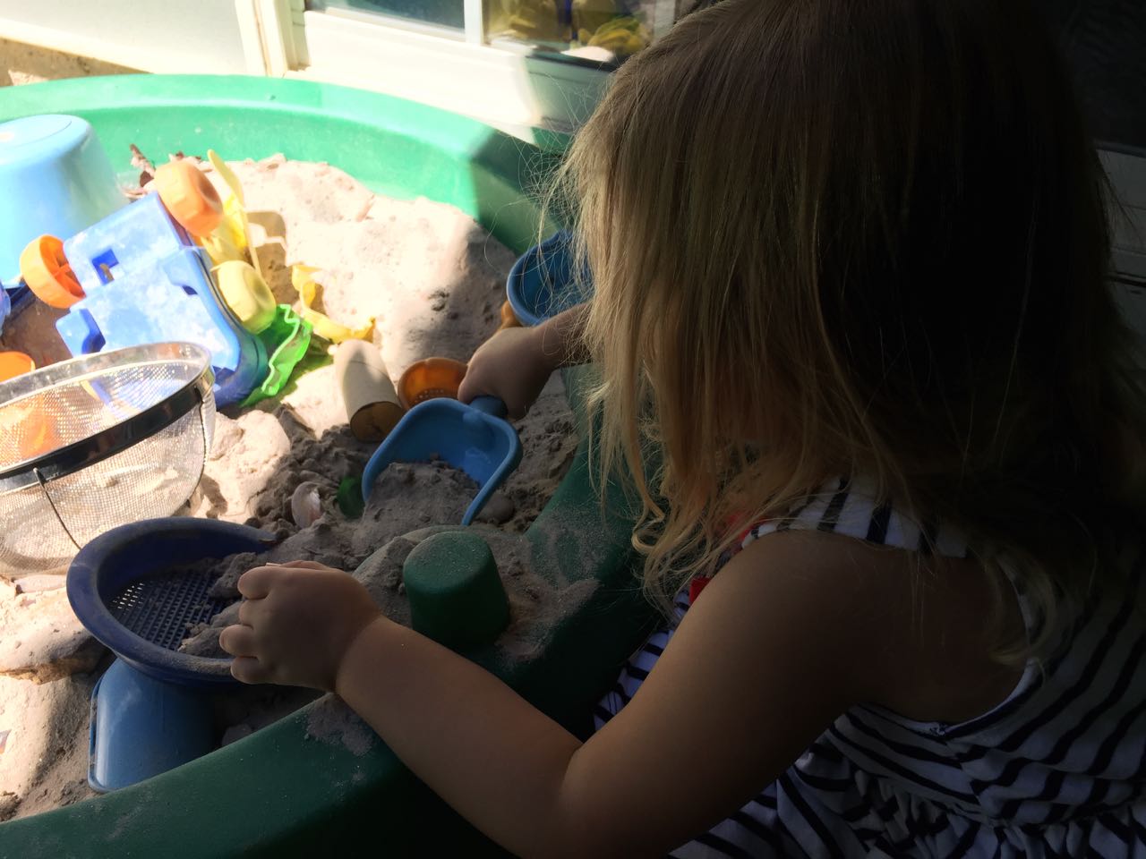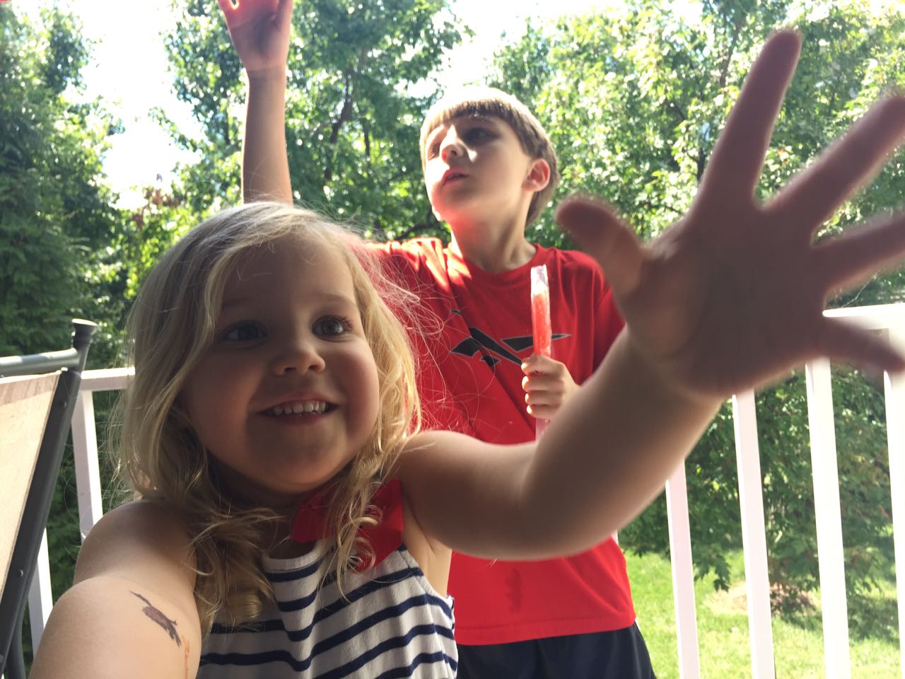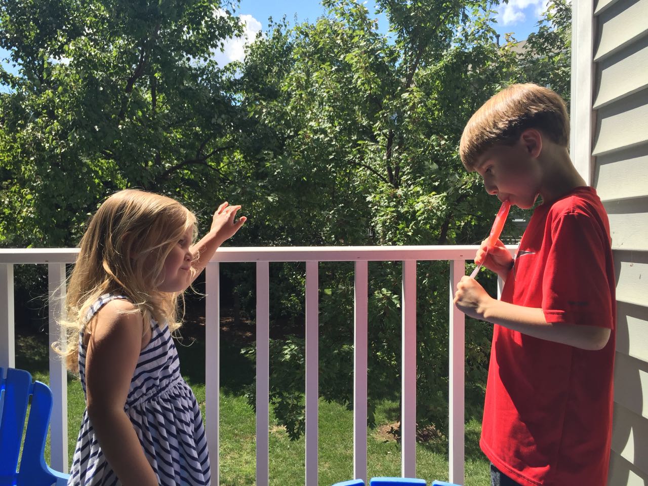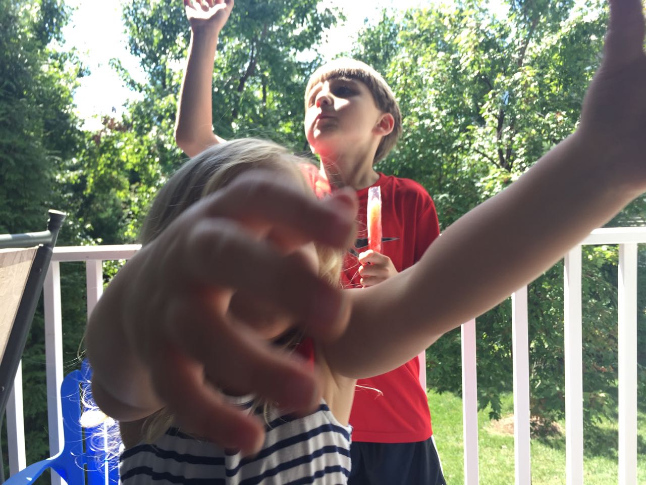 Just a fun Sunday at home..! Today the kids used all the broken crayons to melt down into rainbow crayon cupcakes. They had fun choosing their color combos, although we learned that crayon quality varies widely, which affects the quality of the blend. The majority of the broken crayons were cheap restaurant crayons, and yeah, they are mostly just wax, not a lot of pigment. Still, it was a fun activity. 🙂 The kids also amused themselves with Duplos and Brian’s new Star Wars Command toys (like little army men, but Star Wars characters) and this afternoon, we played with bubbles on the porch, and Brian played catch while Kendall had sandbox time in the back yard.