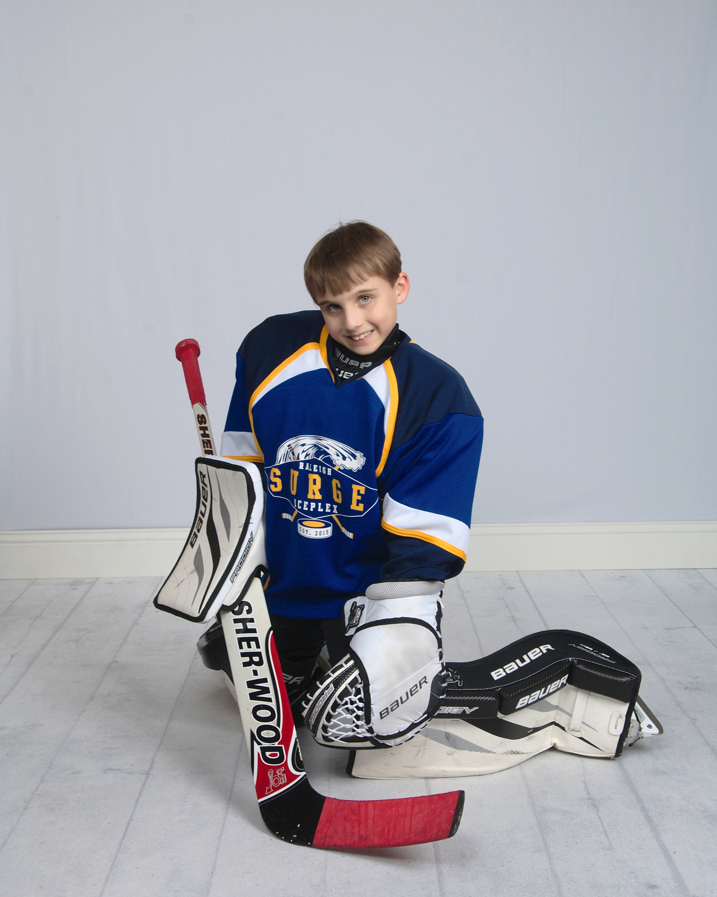 To celebrate Brian’s first travel hockey season with the Raleigh Surge (and hey, it’s the Surge’s inaugural year, too!) we had some hockey portraits made with his team gear. Sheesh, he looks about ready to be on the jumbotron, this kid!