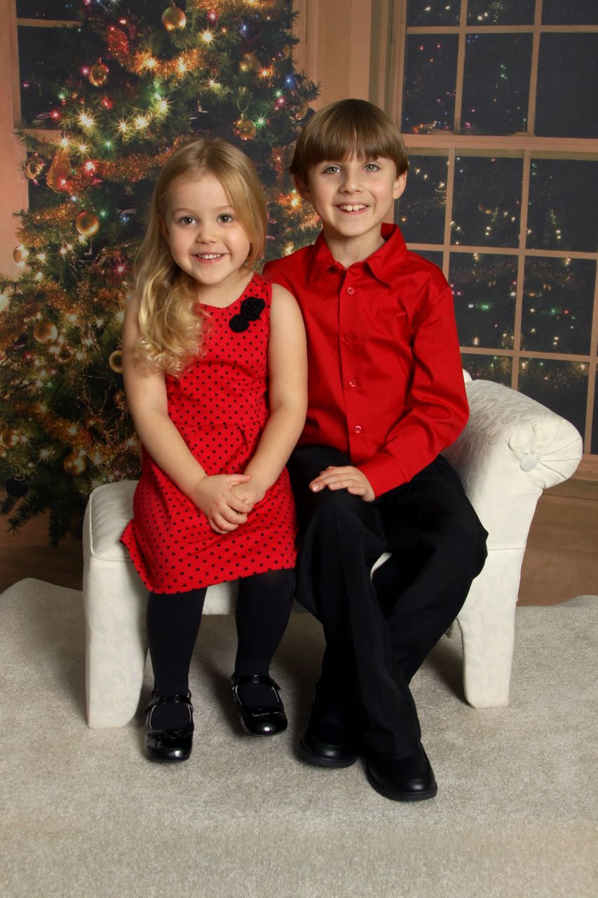 Here are the kids’ holiday pictures from Goddard! 🙂 I was still in Brno when these were made, so Brandon had to wrangle both kids for this before-school photo shoot all by himself. Nicely done, Dad. 🙂