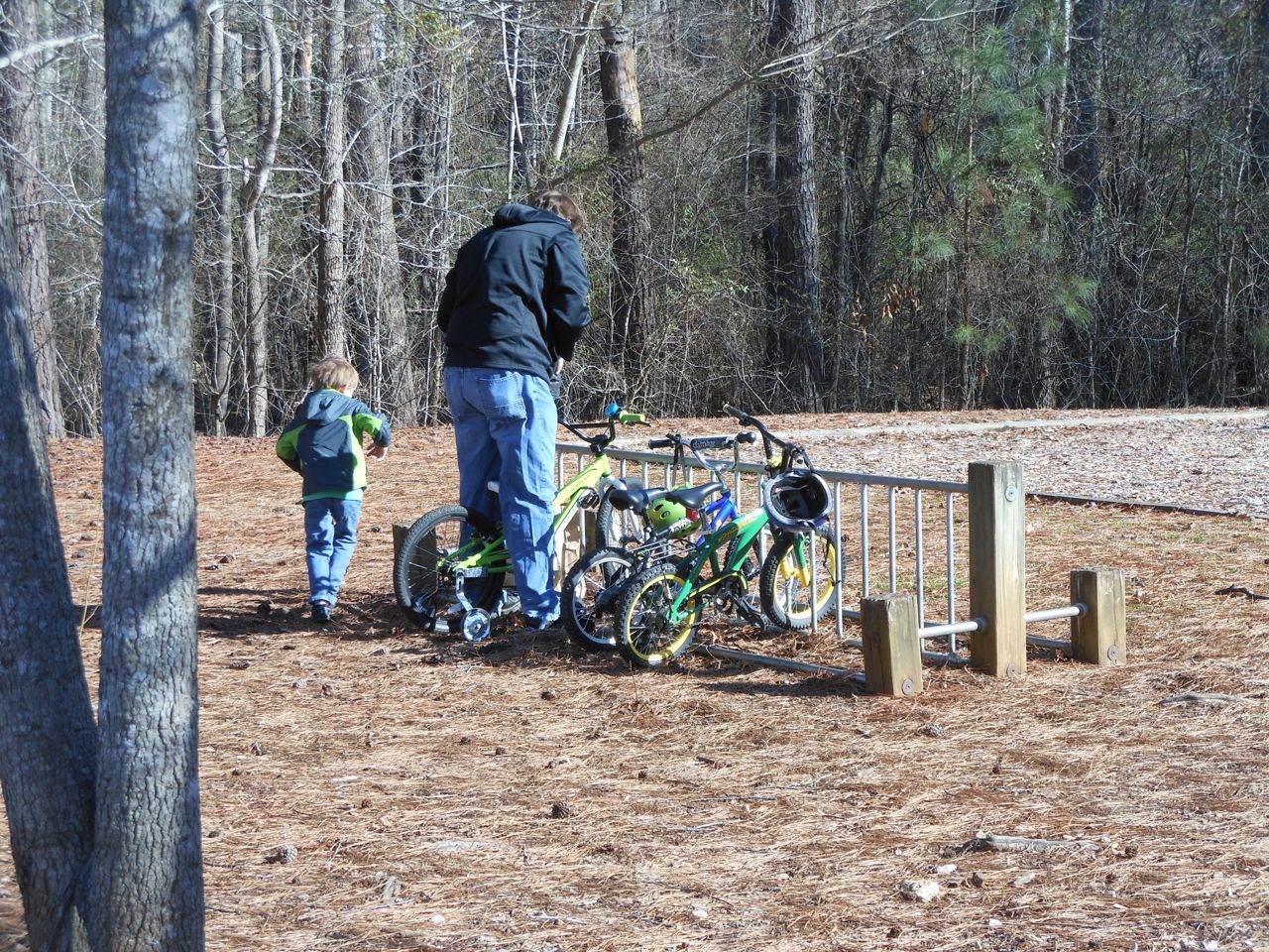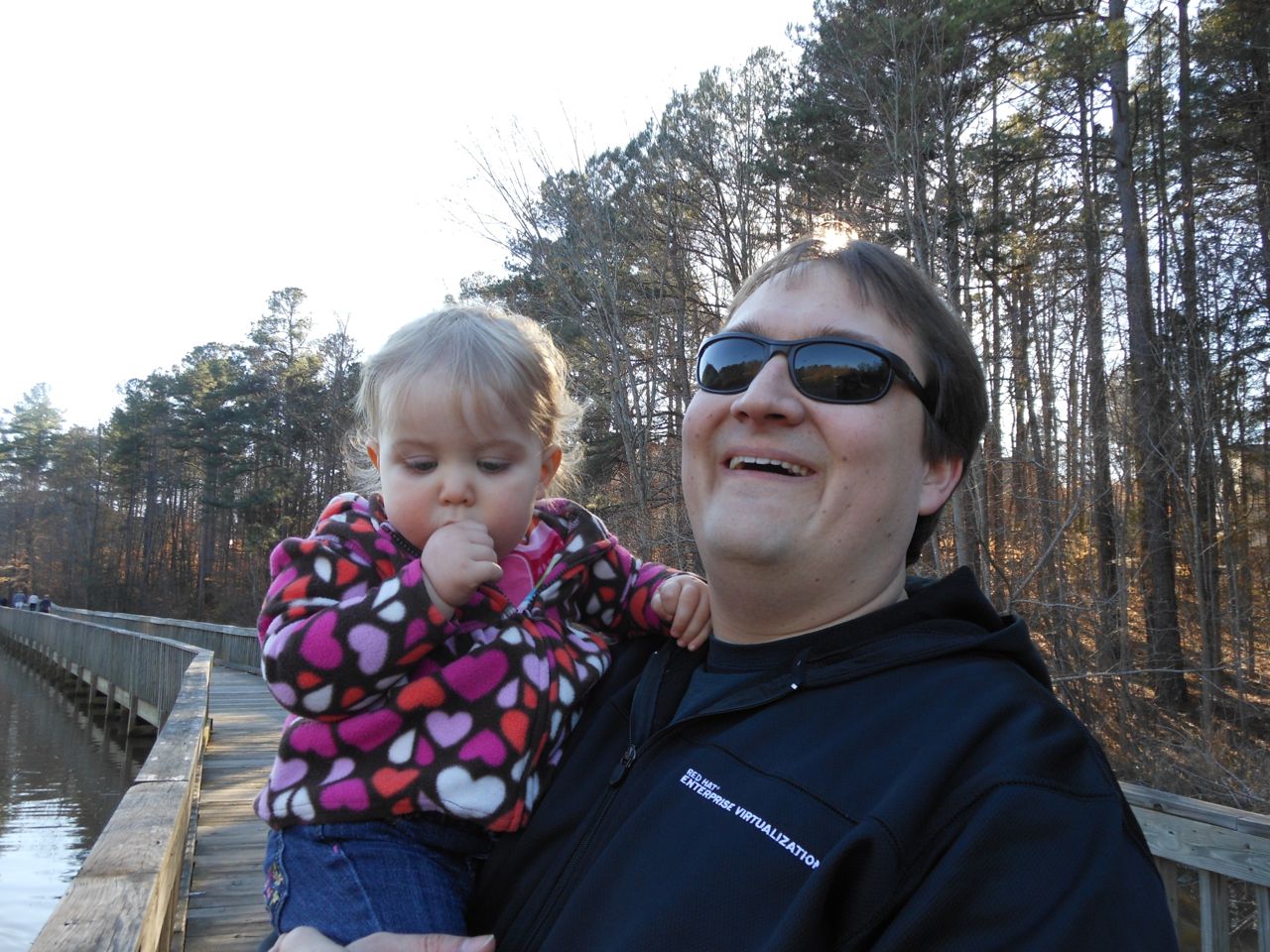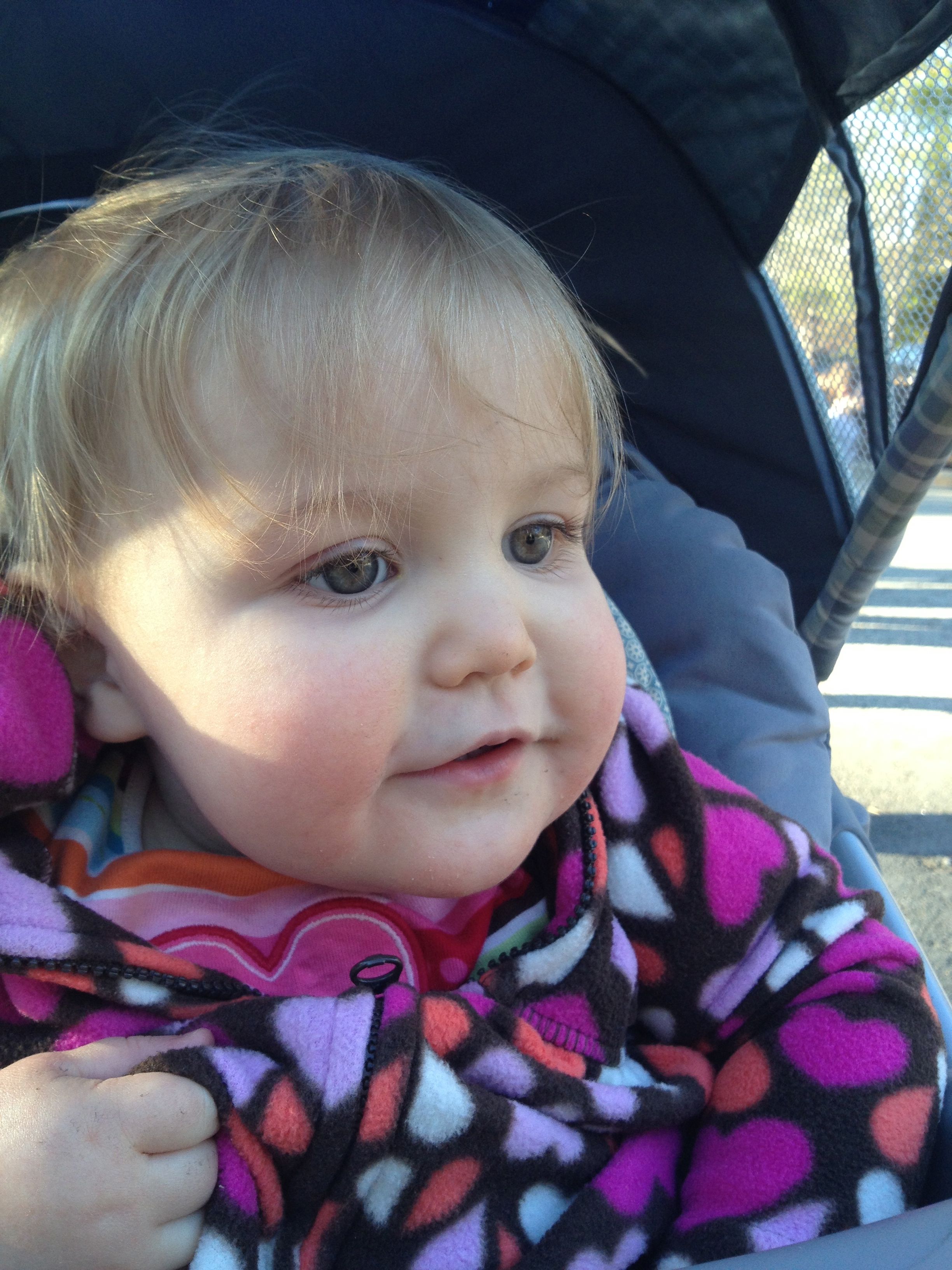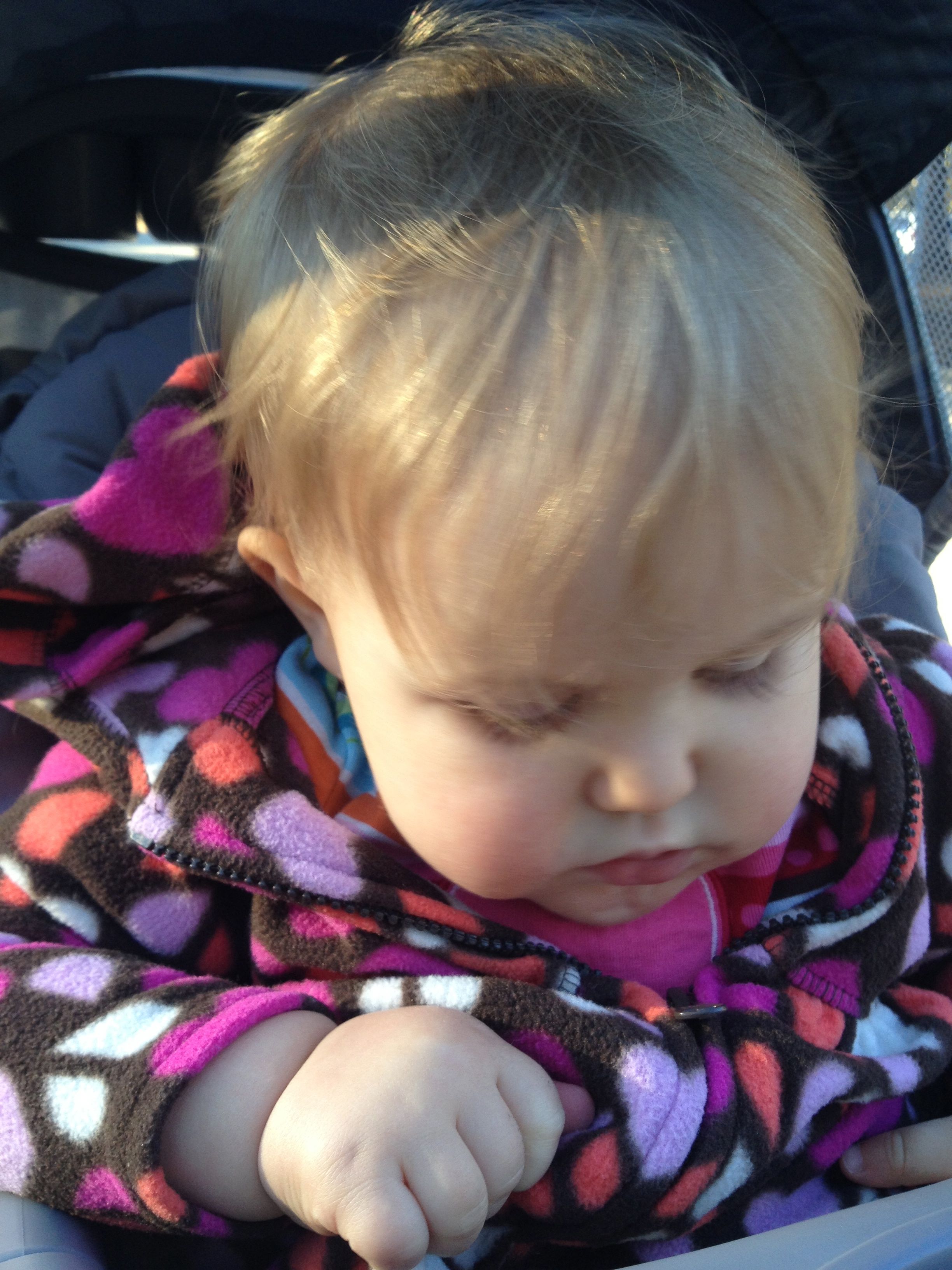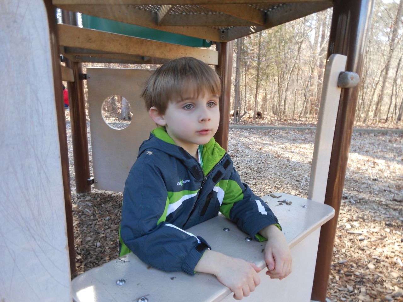 Both before and after our walking/biking/strolling/feeding tour, Brian wanted some playground time. He almost didn’t remember there was some playground equipment at this park, since we don’t always use it, but he was happy once we showed him! He learned about locking his bike up at the bike rack, and practiced locking and unlocking it with Daddy (who remembered the code! Whew!) Kendall enjoyed some swing time and became a huge fan of the slide. She showed off some newfound walking confidence, by taking a lot of steps by herself! Go, Kendall! And just in time for her upcoming 15-month checkup, too! (I’ve been trying not to flip out about her not walking, as long as she takes off before her checkup next week!) Brian wanted to try the adaptive swing, and Brandon tried coaching him on how to pump his legs to get more momentum going. He’s making some progress there. The sun was setting, but Brian managed to fit in some whirlwind games of “I’m in jail” and “welcome to my lemonade stand!” before we had to leave.