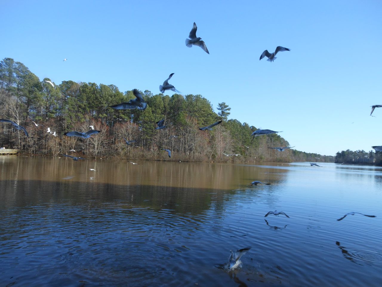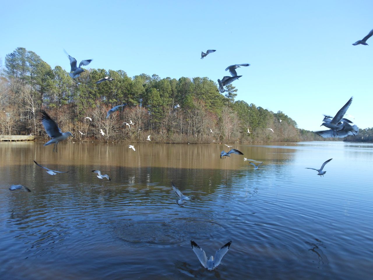 Today we took a trip out to Lake Lynn park, a perennial favorite! It’s been awhile since we’ve visited our animal friends, and we had a ton of bread heels to give them. There were a lot of visiting seagulls, who we don’t always see here.. But today they were out in full force. The ducks and geese seemed to be pretty full already and were settling down, but the seagulls were ravenous, of course. Once they noticed we had so much bread, they completely mobbed us! It was very exciting for the kids, because they came so close, flying all around us.