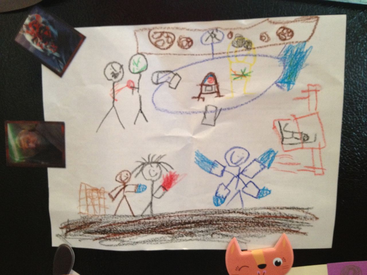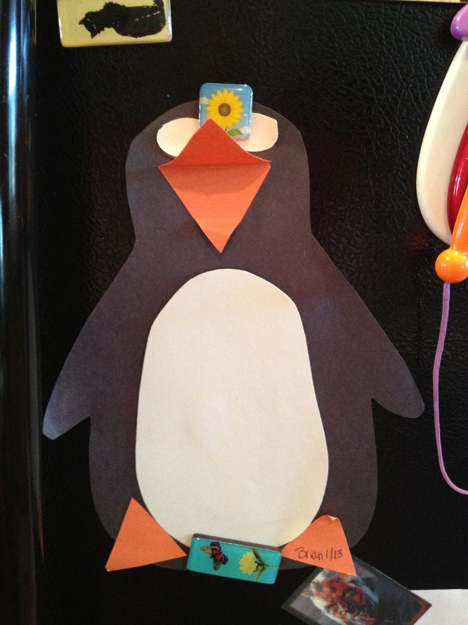 Usually I have a pile of photos from just about every Saturday, but today was..  Different?  Difficult?  Hard to describe, really, but it started off with Brian having a really terrible time at swimming lessons.  He was inconsolable the whole time, and nothing seemed to calm him down.  I don’t have any pictures of Brian at home, but I do have a couple of his artwork–a penguin he had made at school, and a really involved picture with a lot of Star Wars action in there!  I think I can spot General Grievous with four lightsabers in there.
