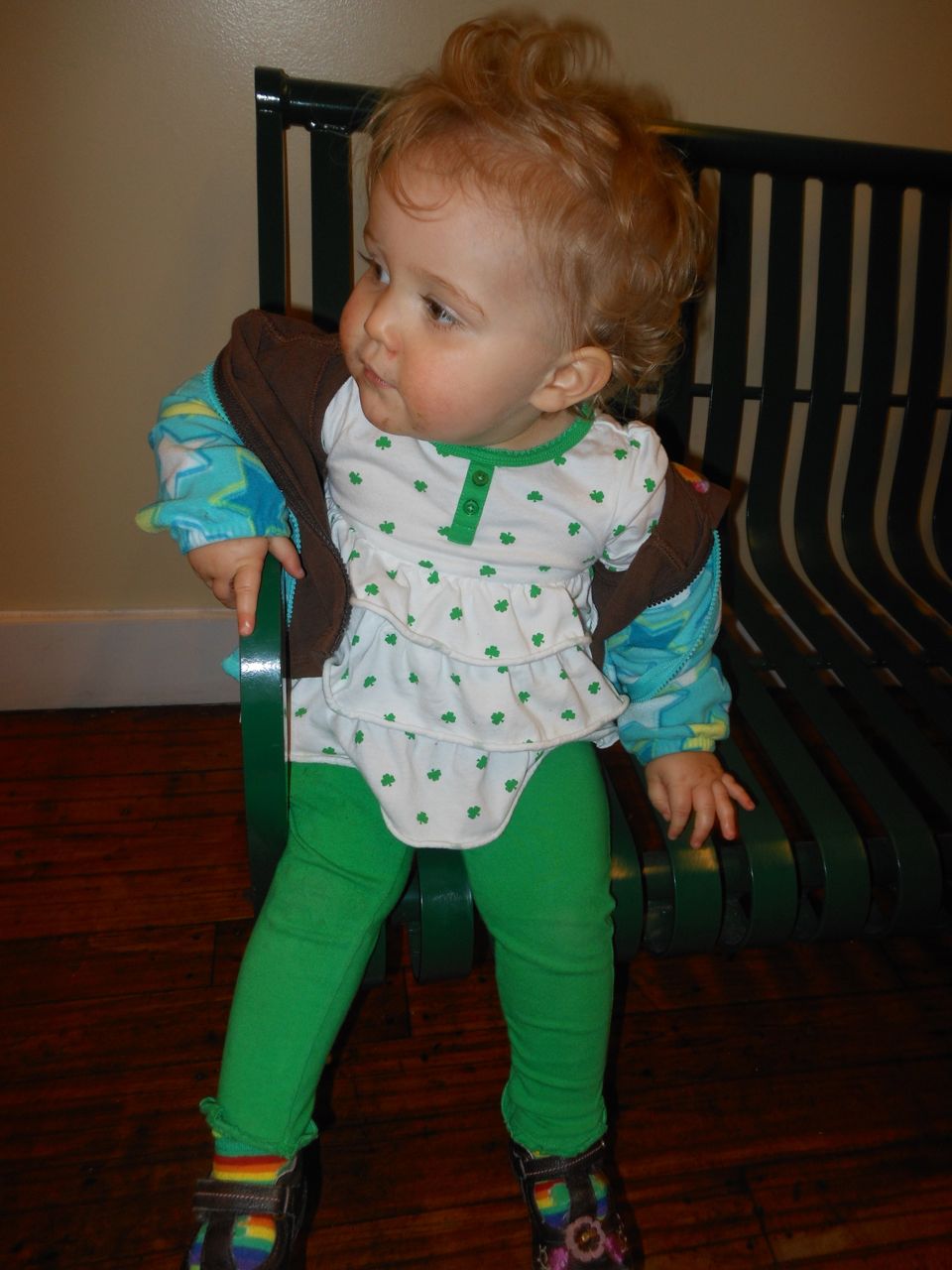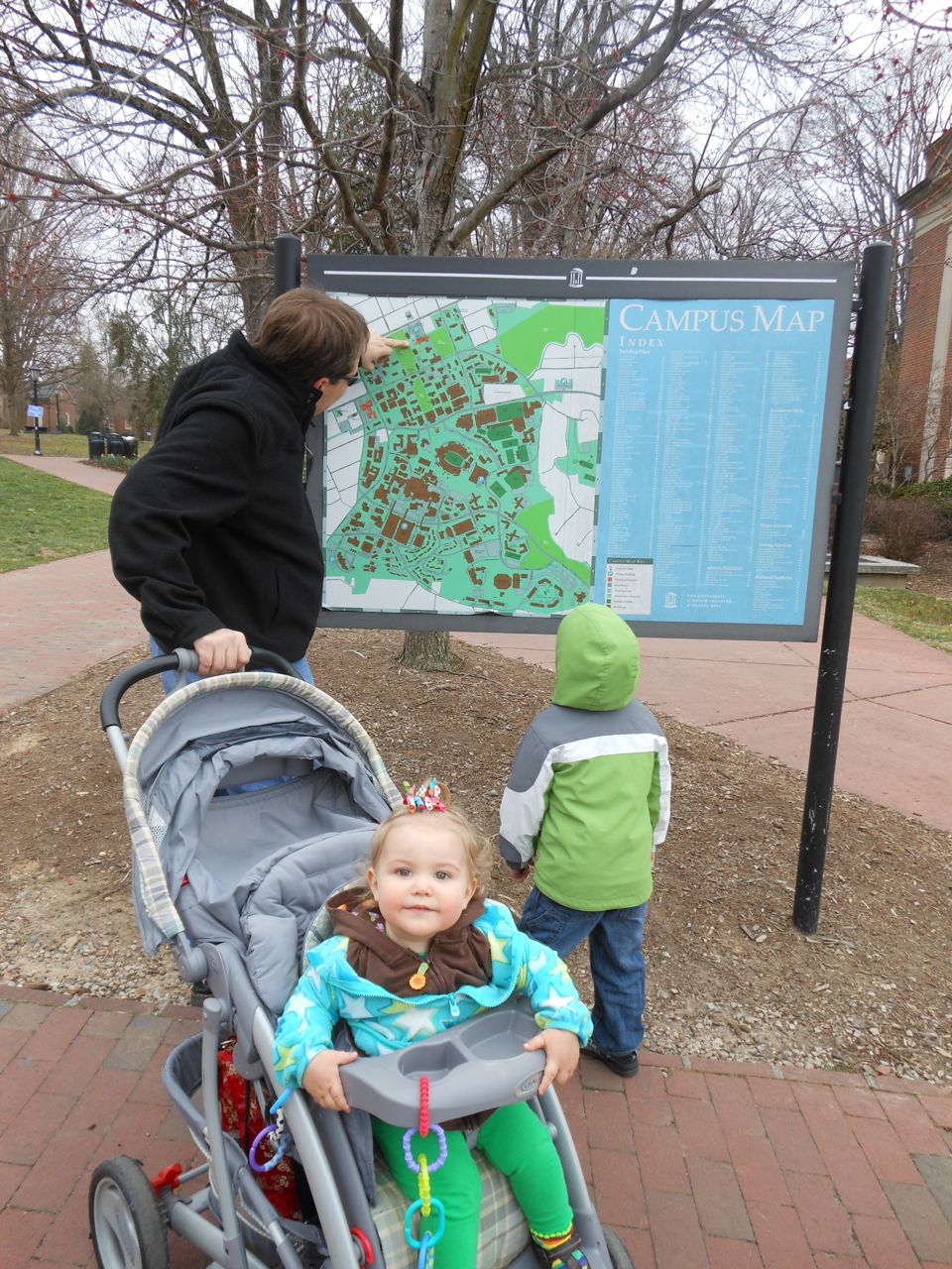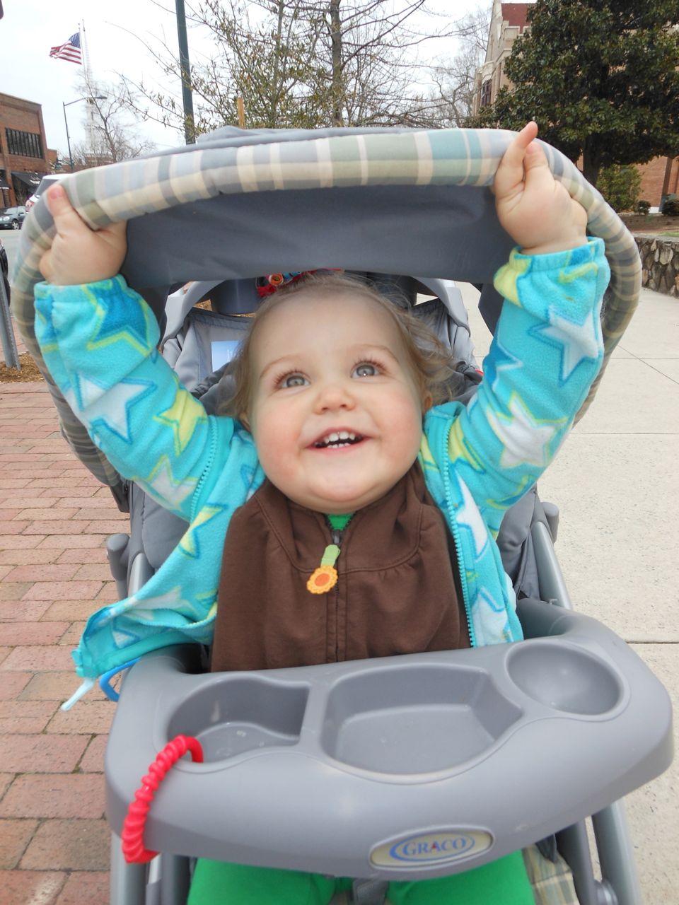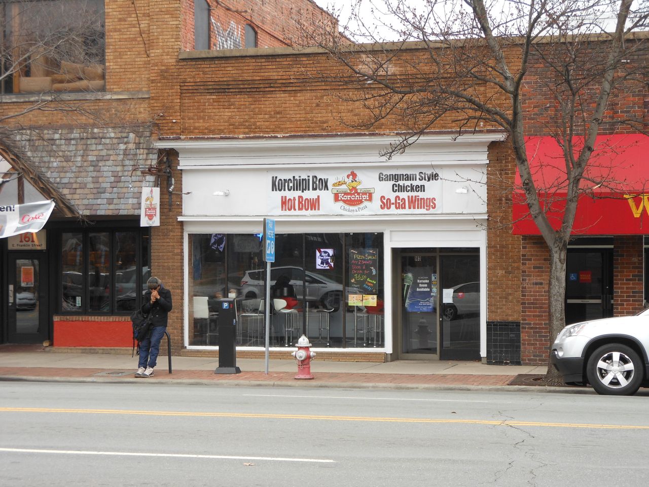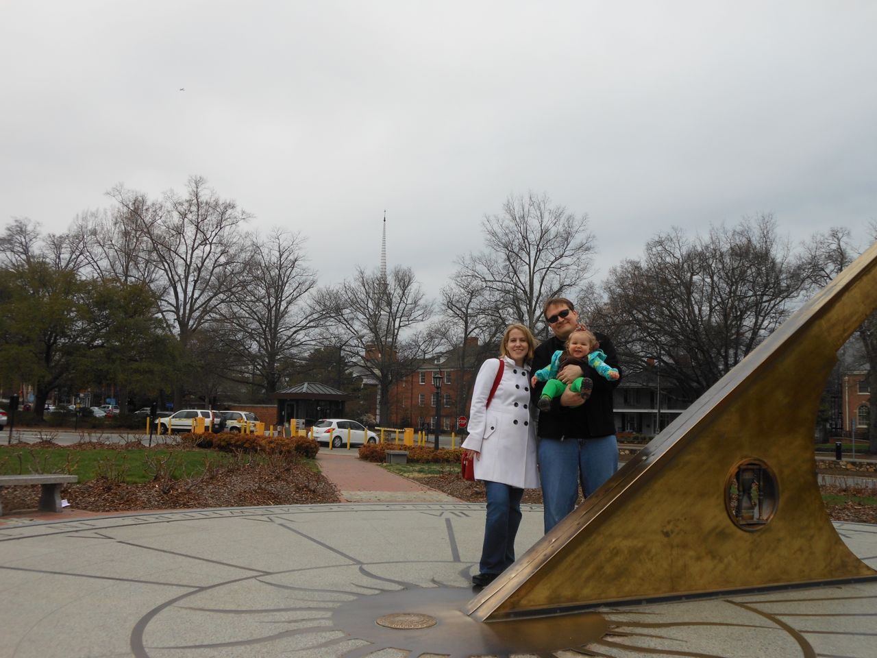 Kendall was a little stir crazy, so once the show started packing up, we headed outside and let the kids play on the sundial outside. The rose bushes aren’t blooming yet, but they’ll be fabulous in another couple months! We planned on getting dinner at Franklin St. Pizza and Pasta, but, to our horror, it was gone! Replaced by something advertising “Gangnam Style Chicken”. Normally we’d be all about investigating potential Korean food, but, not today.. This was almost too much for me and Brandon to handle, as another favorite, Pepper’s Pizza, had closed down recently as well. The kids didn’t know what a blow we were suffering, of course, and they were happy to stroll around Franklin St.