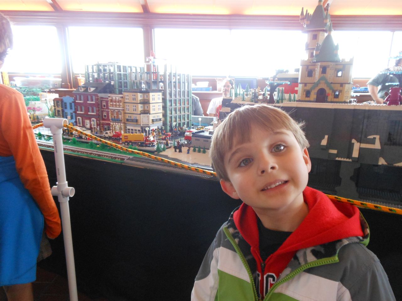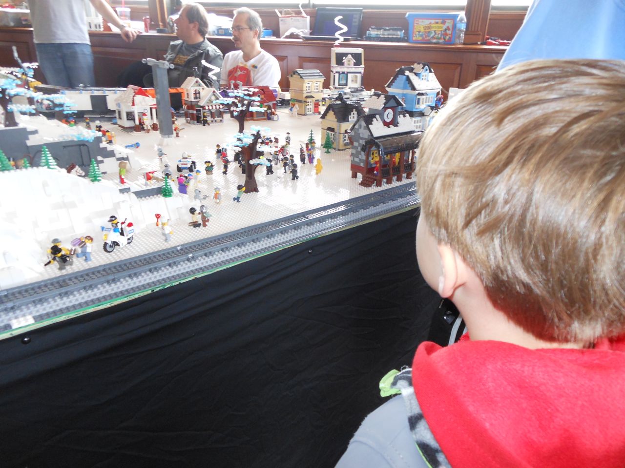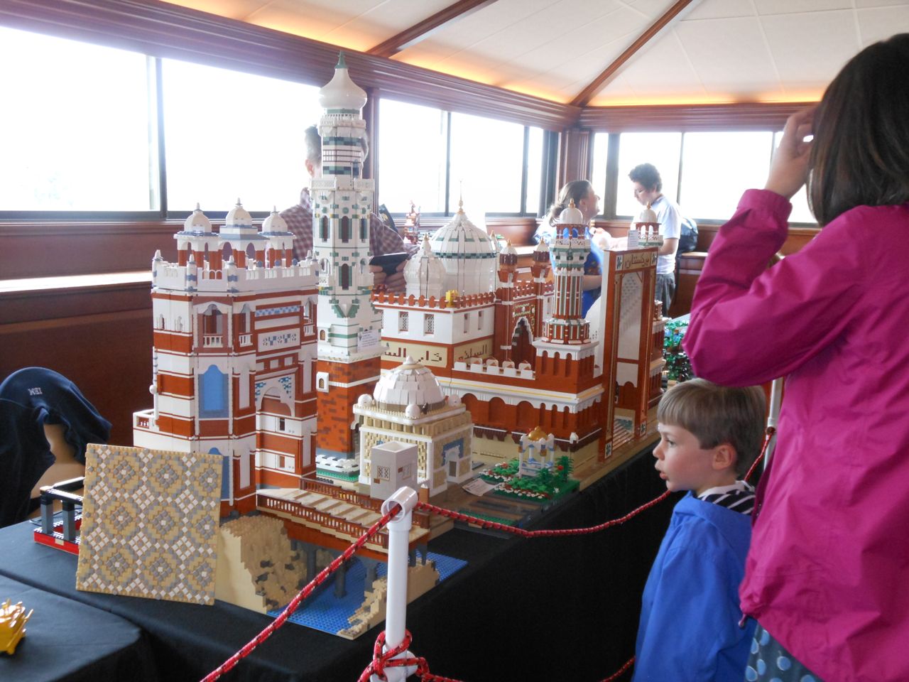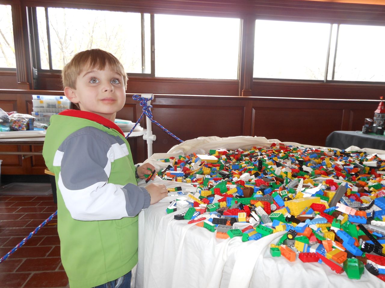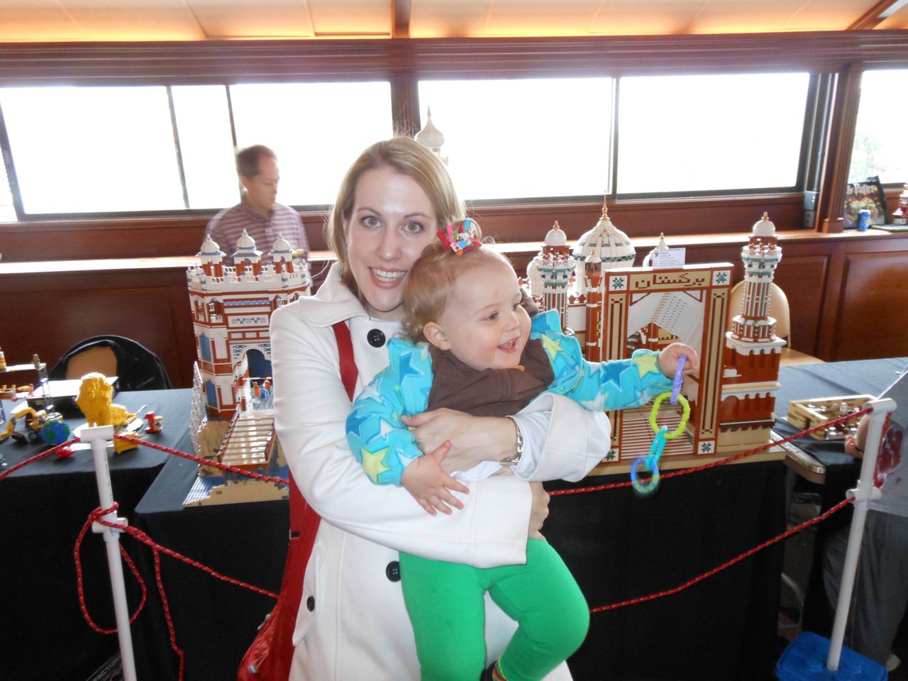 Eventually we got our act together and headed to Chapel Hill for a small Lego fair that was going on at the Morehead Planetarium. We took a whirlwind tour through some of the planetarium (and I made Brian watch the “Powers of Ten” video, one of my favorites!) and eventually found the Lego display, all the way up on the fourth floor. Brian had a great time, looking at the huge Lego displays, and of course, playing with the Legos they had out for the kids. Brandon and I liked seeing some of the cool artistic creations and feats of Lego engineering, as well as a historical display of Lego Modulex, a discontinued series that was aimed at architects for their 3-D models. Brian really liked a display that had light-up bricks and moving parts, including a Lego Star Wars Museum that opened up, displaying a ton of Star Wars Minifigures inside!