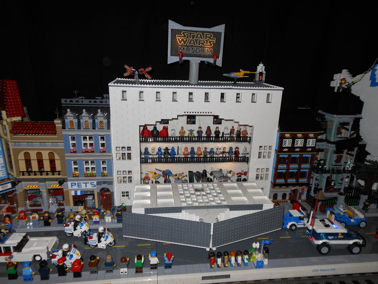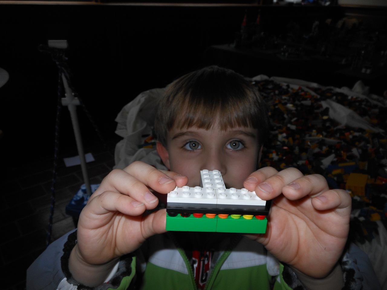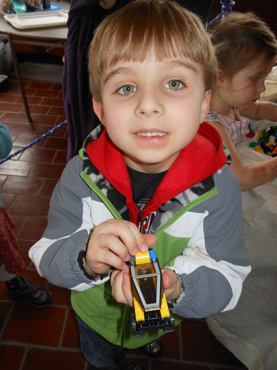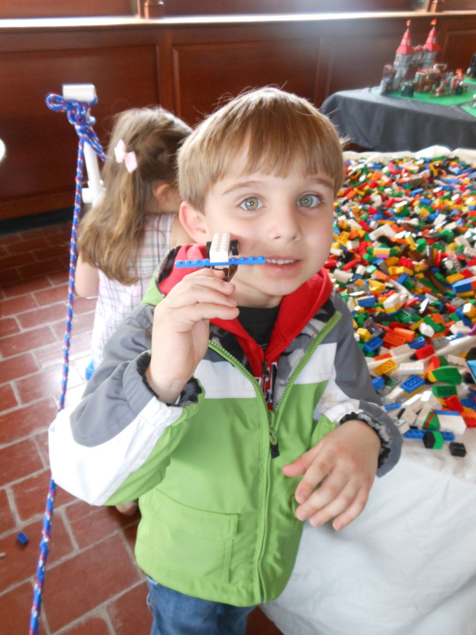 Eventually we got our act together and headed to Chapel Hill for a small Lego fair that was going on at the Morehead Planetarium. We took a whirlwind tour through some of the planetarium (and I made Brian watch the “Powers of Ten” video, one of my favorites!) and eventually found the Lego display, all the way up on the fourth floor. Brian had a great time, looking at the huge Lego displays, and of course, playing with the Legos they had out for the kids. Brandon and I liked seeing some of the cool artistic creations and feats of Lego engineering, as well as a historical display of Lego Modulex, a discontinued series that was aimed at architects for their 3-D models. Brian really liked a display that had light-up bricks and moving parts, including a Lego Star Wars Museum that opened up, displaying a ton of Star Wars Minifigures inside!