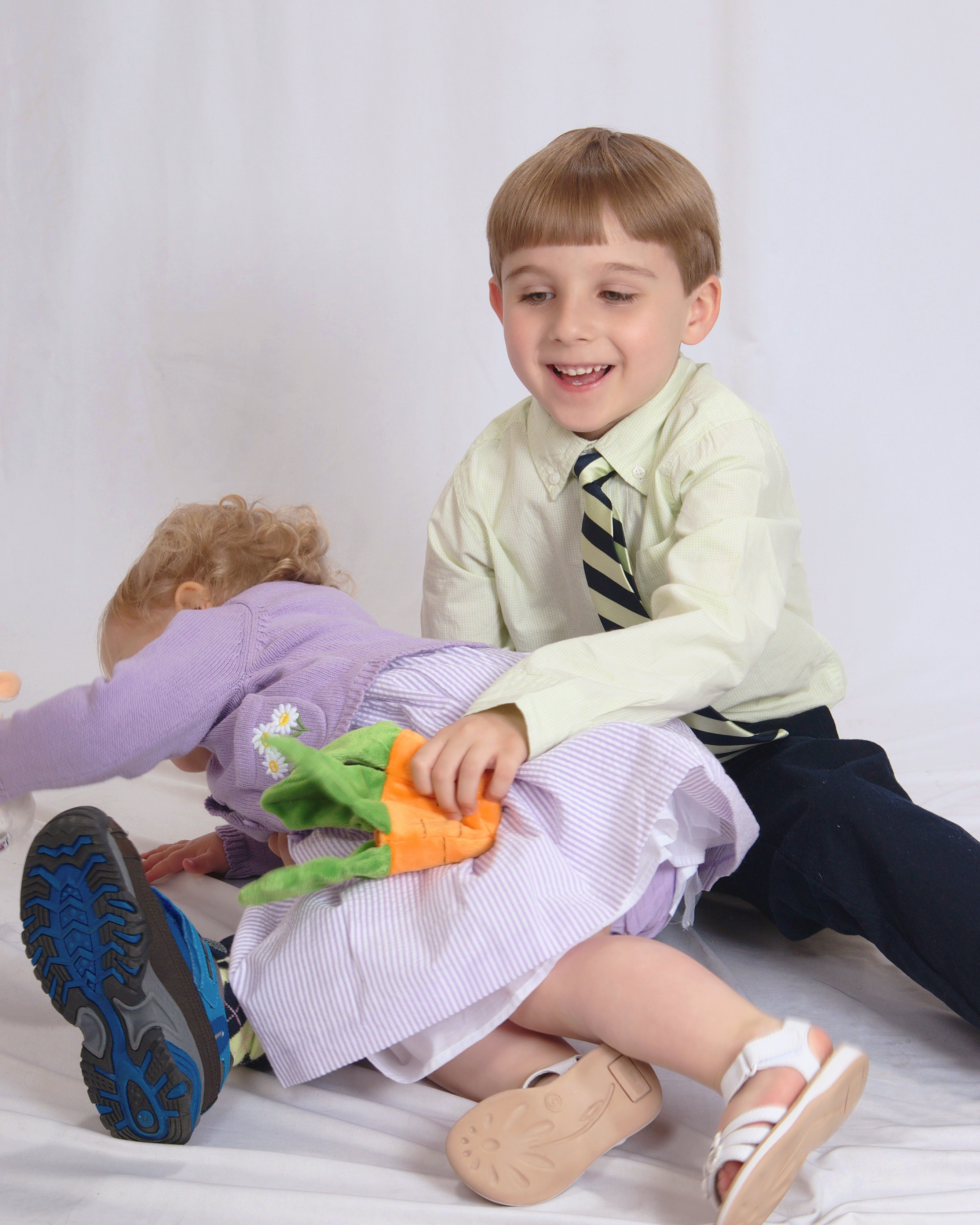 Here are the kids’ spring sibling portraits! We hope to make this an annual tradition, pictures of the kids together around Mother’s Day. We had to switch studios this time, as Sears unceremoniously closed down all of their portrait studios! We switched to JCPenny’s, and though the experience was less than ideal, the results are still pretty good. What do you think? 🙂 If it’s not obvious from the, ah, creative poses, Miss Kendall was less than interested in sitting still!