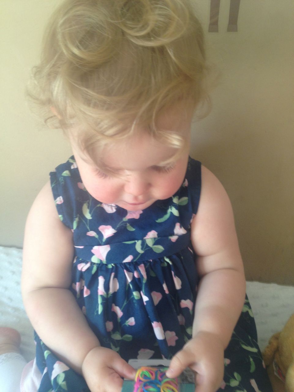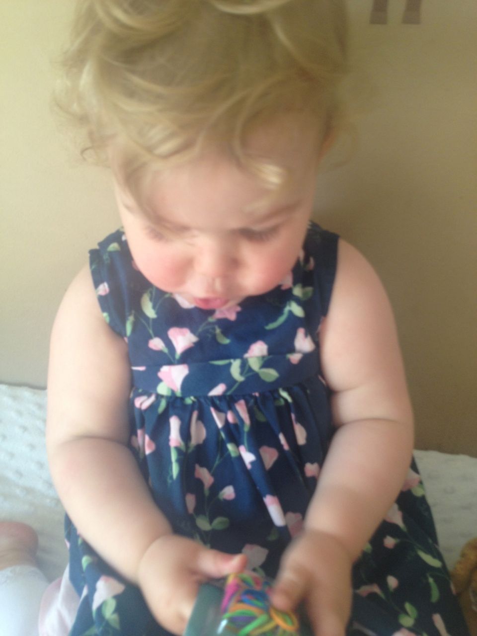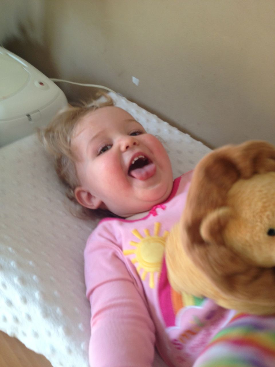 Just a few snapshots of a very silly Kendall from this morning! She woke up with a serious case of the giggles and wouldn’t stop sticking her tongue out at me. 🙂 She acted like she wanted me to put her hair up with those rubber bands, but decided it was much more fun to wiggle and giggle and thwart Mommy instead. Silly Kendall!