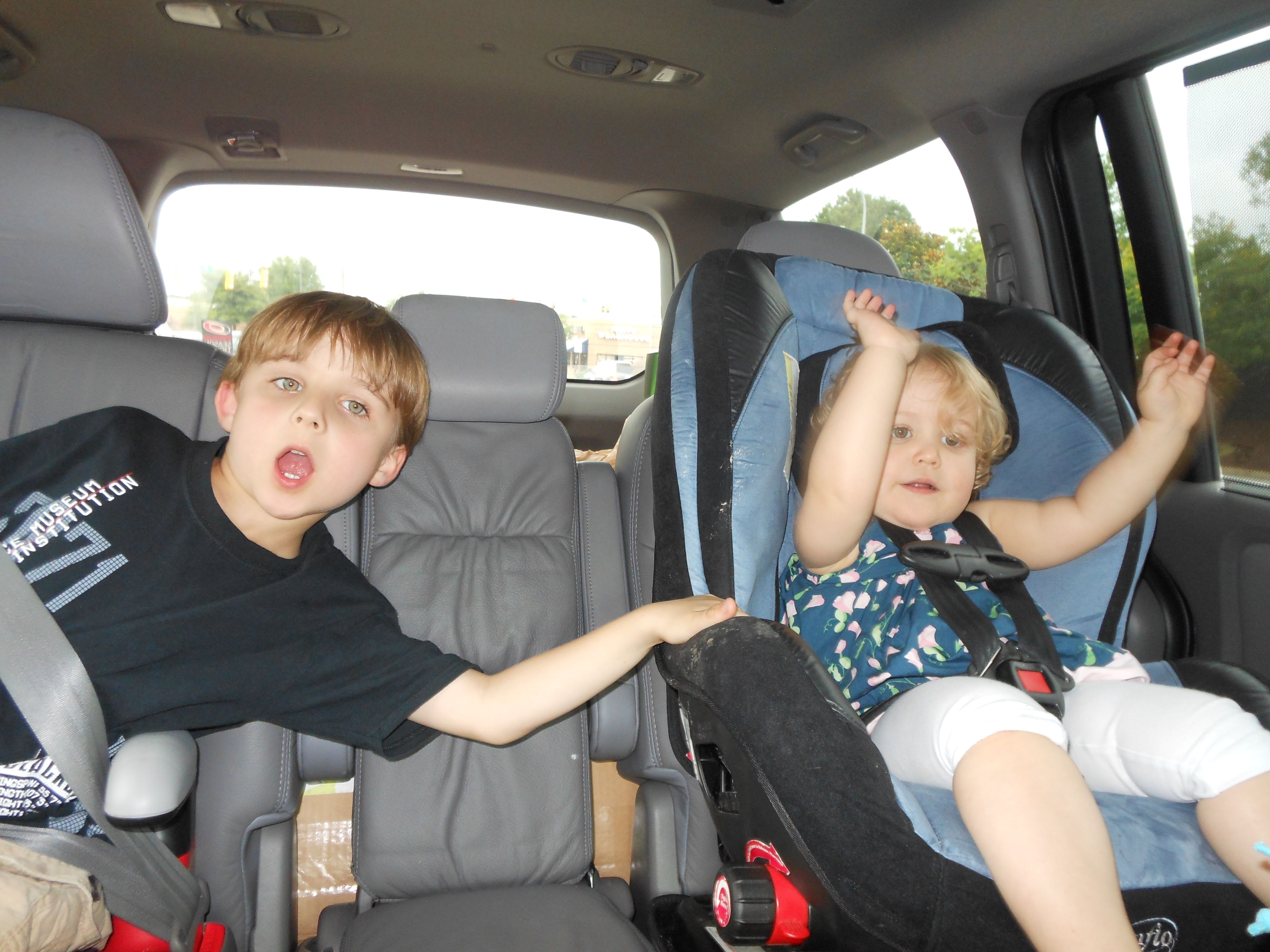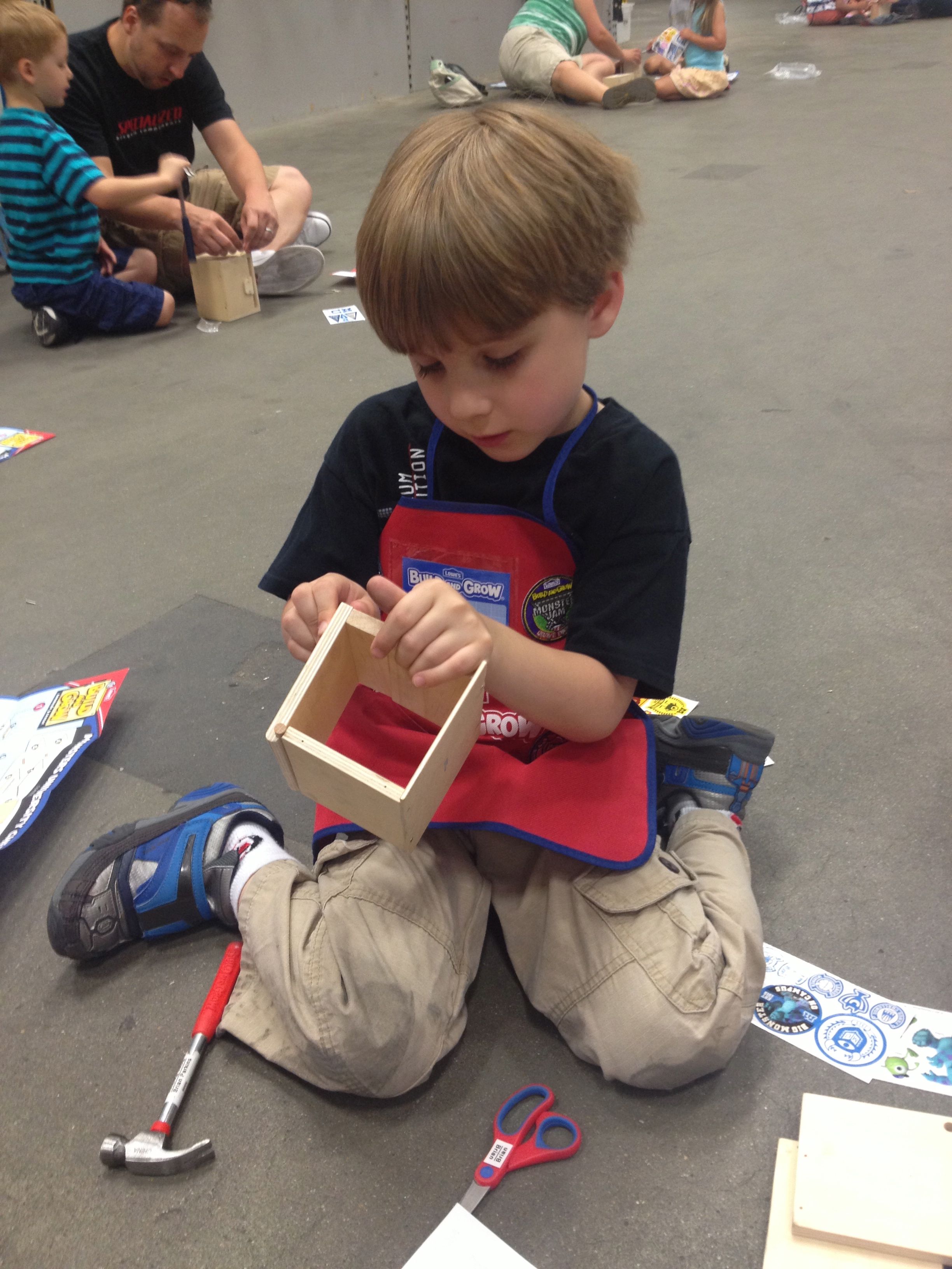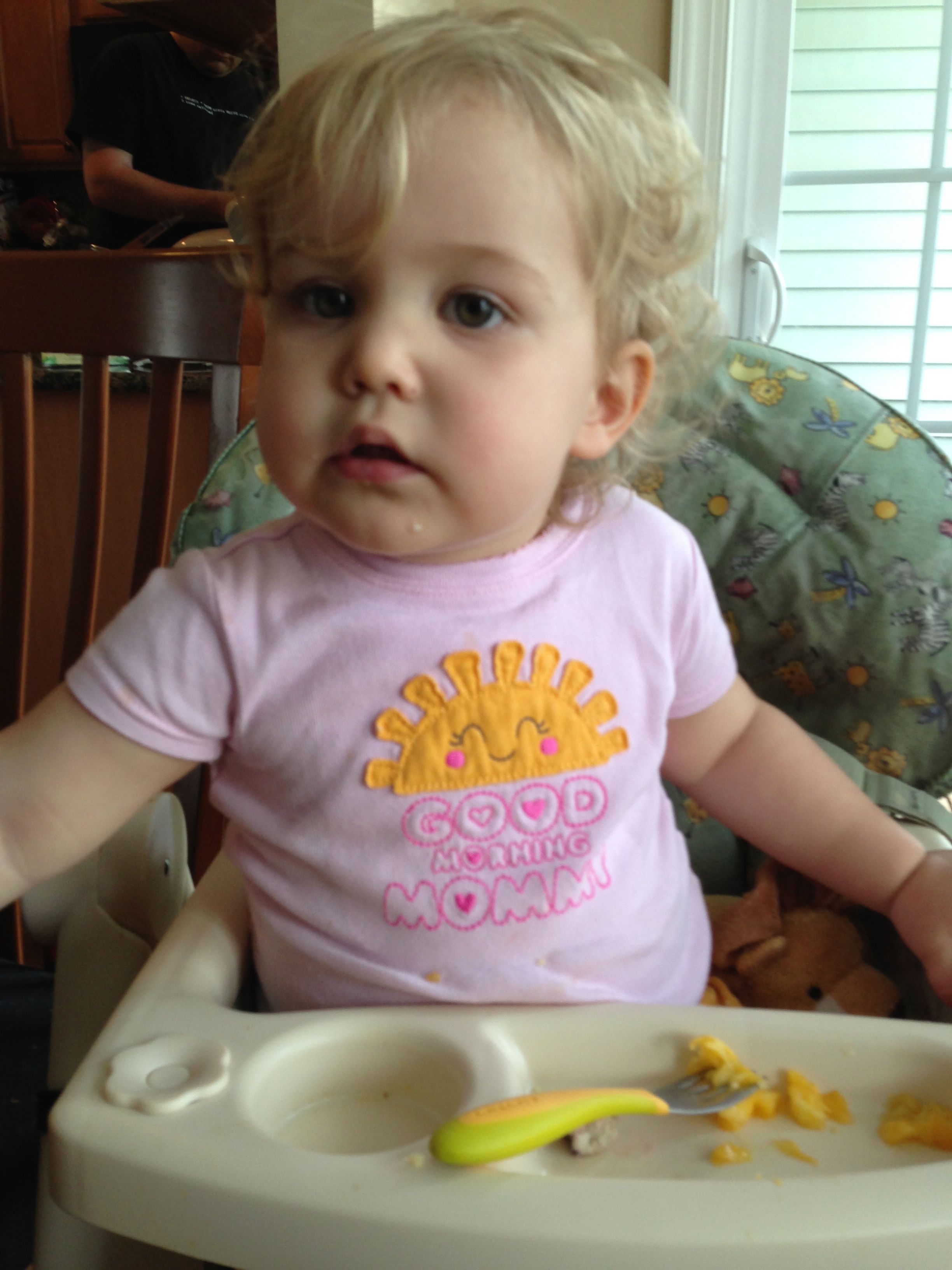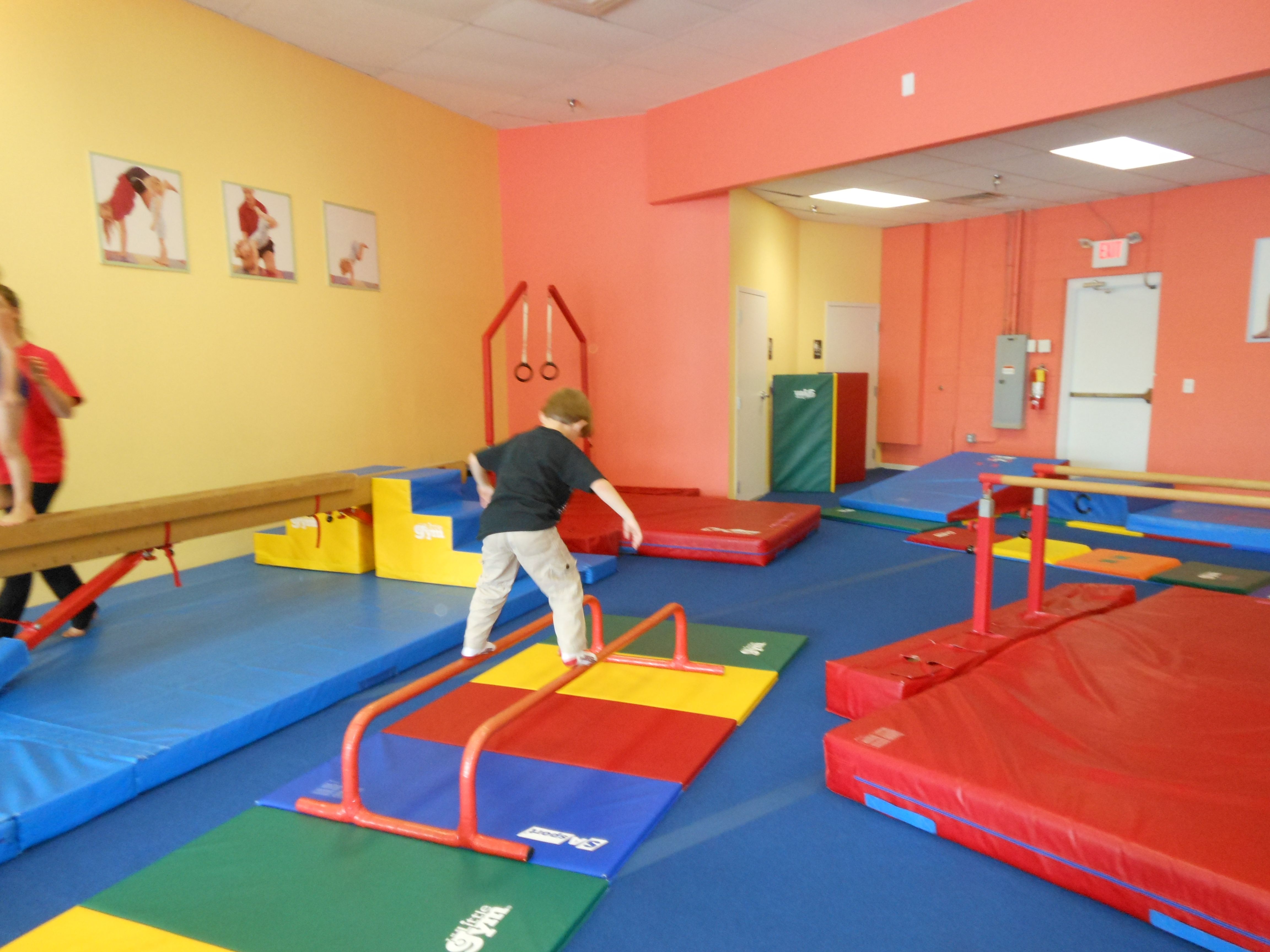 Today was pretty legendary, in terms of how busy Brian was! It started off with a trip to Lowe’s for more building fun. He built a cool Monsters University-themed trunk and decorated it with stickers. Then, home for a bit, and then Brian and Brandon went back out for skating lessons. He’s working hard and making progress! Kendall and I had a pretty laid-back morning by comparison. (I just love those “Good Morning Mommy” PJs! They always make me smile.) In the afternoon, we all headed out to Julian’s birthday party, at the Little Gym. We were glad to see that Brian wasn’t intimidated by this gymnastics party, and in fact, pretty much owned the place! (A previous party at a much larger gym was meltdown city, he wouldn’t even go inside! But then again, he was coming down with strep throat at the time, we just didn’t know it yet.) The young and energetic staff had a lot of structured activities for the kids, which helped everyone get the wiggles out. Brian loved flipping on the uneven bars, and the big inflatable trampoline was a big favorite of everyone! Kendall was too small for most of the activities, so Brandon and I just chased her around the place and kept her from getting in the way of the big kids. Later, it was time for cake and snacks, and we enjoyed all the food and the shark-themed party. The kids each got a cool shovel and pail, filled with beach-themed prizes and little plush sharks. Later, we stopped by the toy store (yes, we were brave enough to do this with two sugared-up, tired kids!) where we picked up some summer water toys (sprinklers, water rockets, water blasters, etc). Brian picked out a wild outfit for Kendall, with a bright orange top and zebra-stripe pants. The kids did some more awesome car-dancing to “Jungle Love” and we picked up some Chinese takeout on the way home. Brian asked me if I knew how to make watermelon into balls, like in Grandpa Steve’s fruit basket. I told him that yes, I knew how, and even had a tool to do it. He was so excited, he talked about it all through dinner, and we just had to make melon balls for dessert. Brian practiced with the melon baller a bit, and after we’d filled up our bowl and it got a little challenging to make more, we just mashed up the remaining watermelon inside the rind to make watermelon soup! I think Brian found this to be even more exciting than the melon balls. 🙂