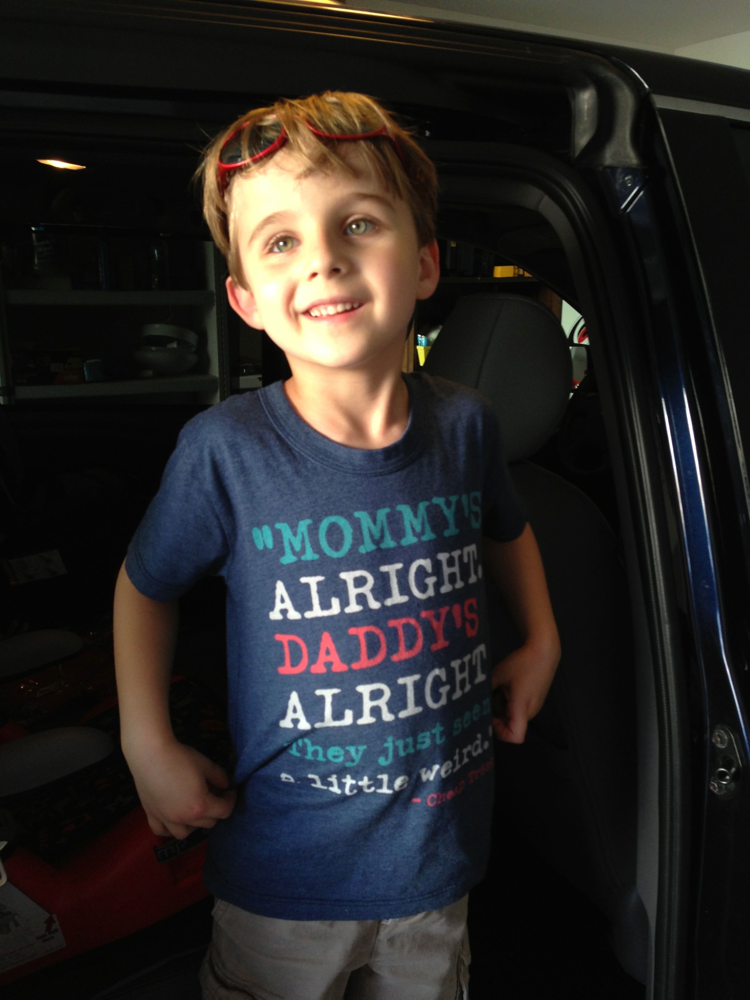 Aren’t these kids adorable?  We already know this, of course, but more photos are never unwelcome, right? 🙂  Kendall was the cat’s pajamas this morning in her, ah, cat pajamas, holding onto her little big cats. (English teachers, forgive me that awkward sentence!)  After school, Brian was just glowing in the afternoon sun, rocking out to some Cheap Trick, wearing his cool t-shirt with a quote from their song “Surrender“.  (Yes, the shirt is quite hipster-ironic and mostly a nod to us old folks that get it, but of course we felt it was our responsibility as reasonably-cool parents to make sure the boy knew the song that inspired it!)  We played ball and RC car in the driveway after school today.  It’s a challenge keeping Kendall safe sometimes, and catch can turn into dodgeball rather unexpectedly, but it’s great to see the kids playing together.