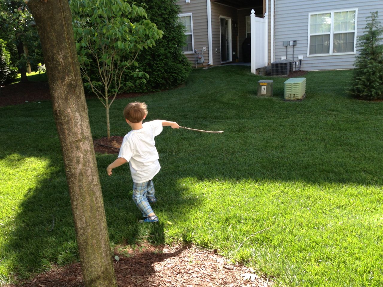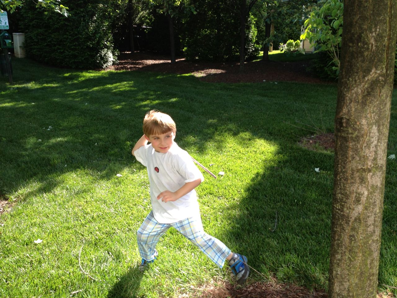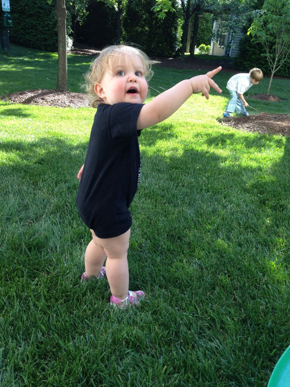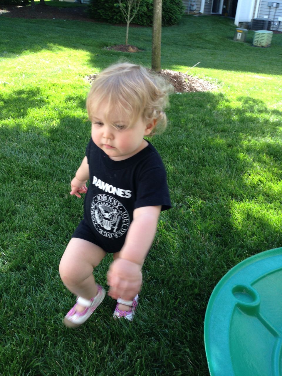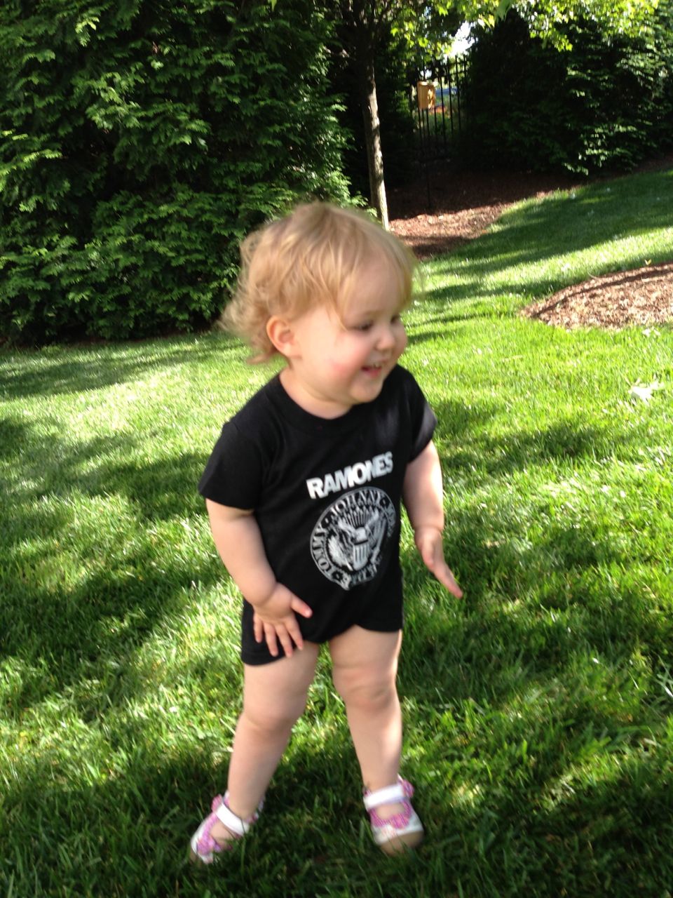 Just a relaxing Saturday at home! The kids had some sandbox time, since it was a beautiful day outside. Brian enjoyed finding ladybugs and playing stick-saber. I think Kendall is so cute in that Ramones romper, just as Brian was. π I bought that for my “theoretical, potential baby that I might have eventually” probably more than a decade ago. Just couldn’t pass it up, even rock tees are cuter in miniature! So glad they both got to wear it–and, that they like the Ramones. π