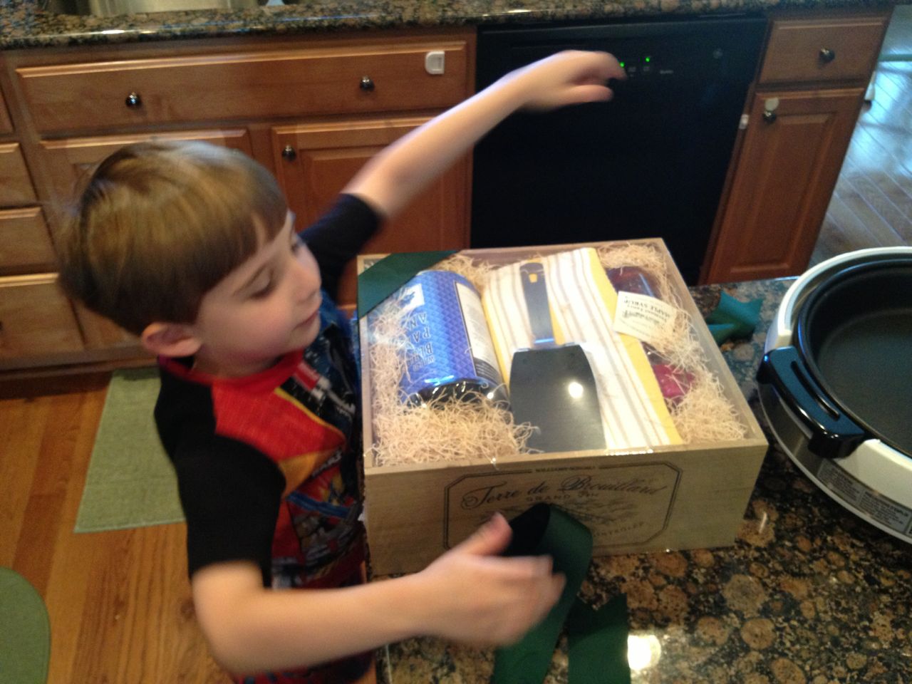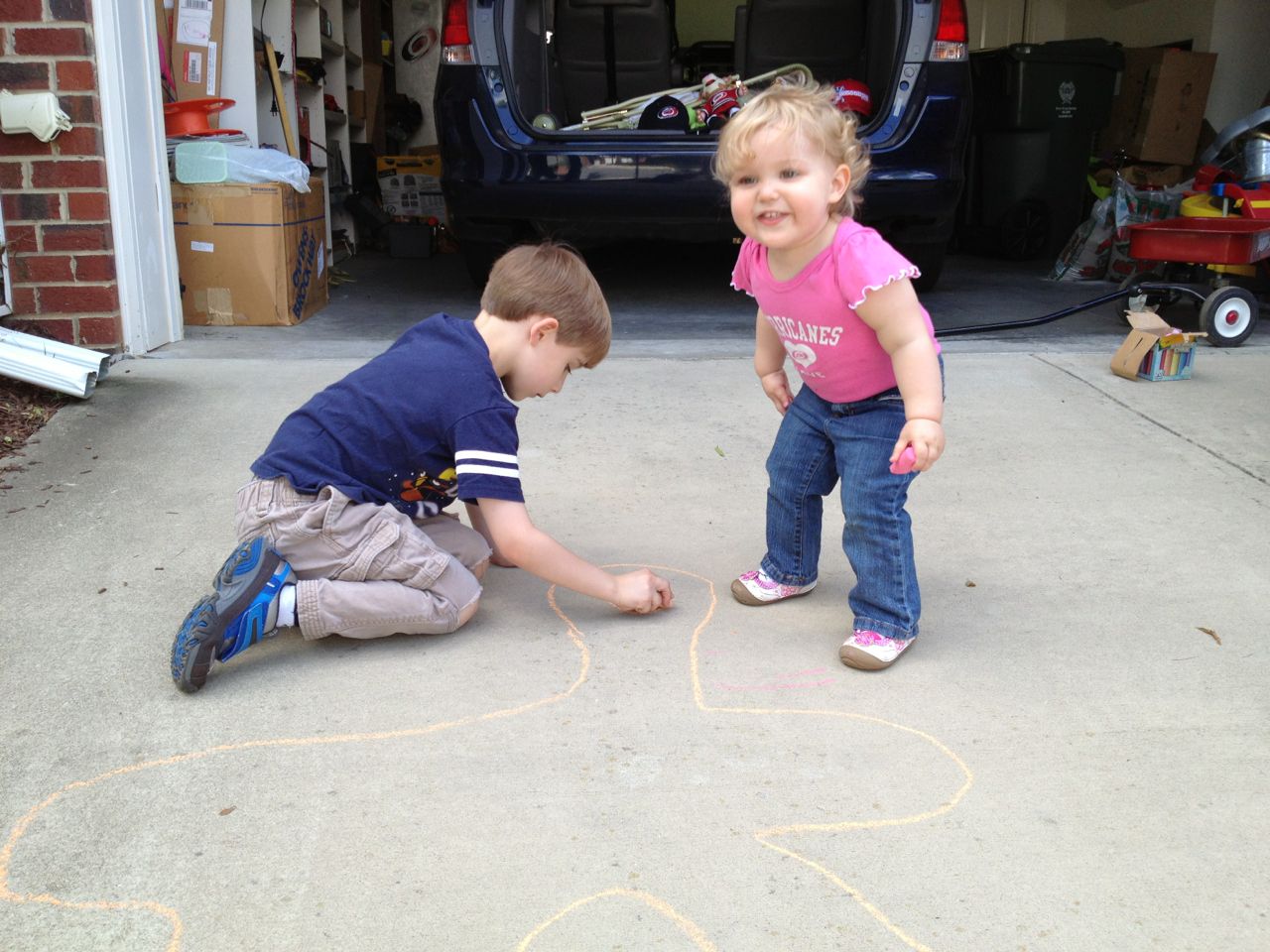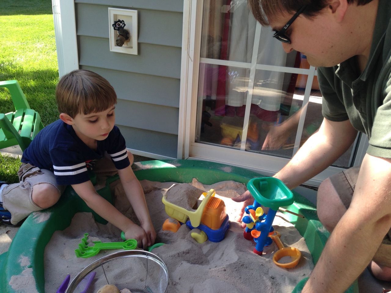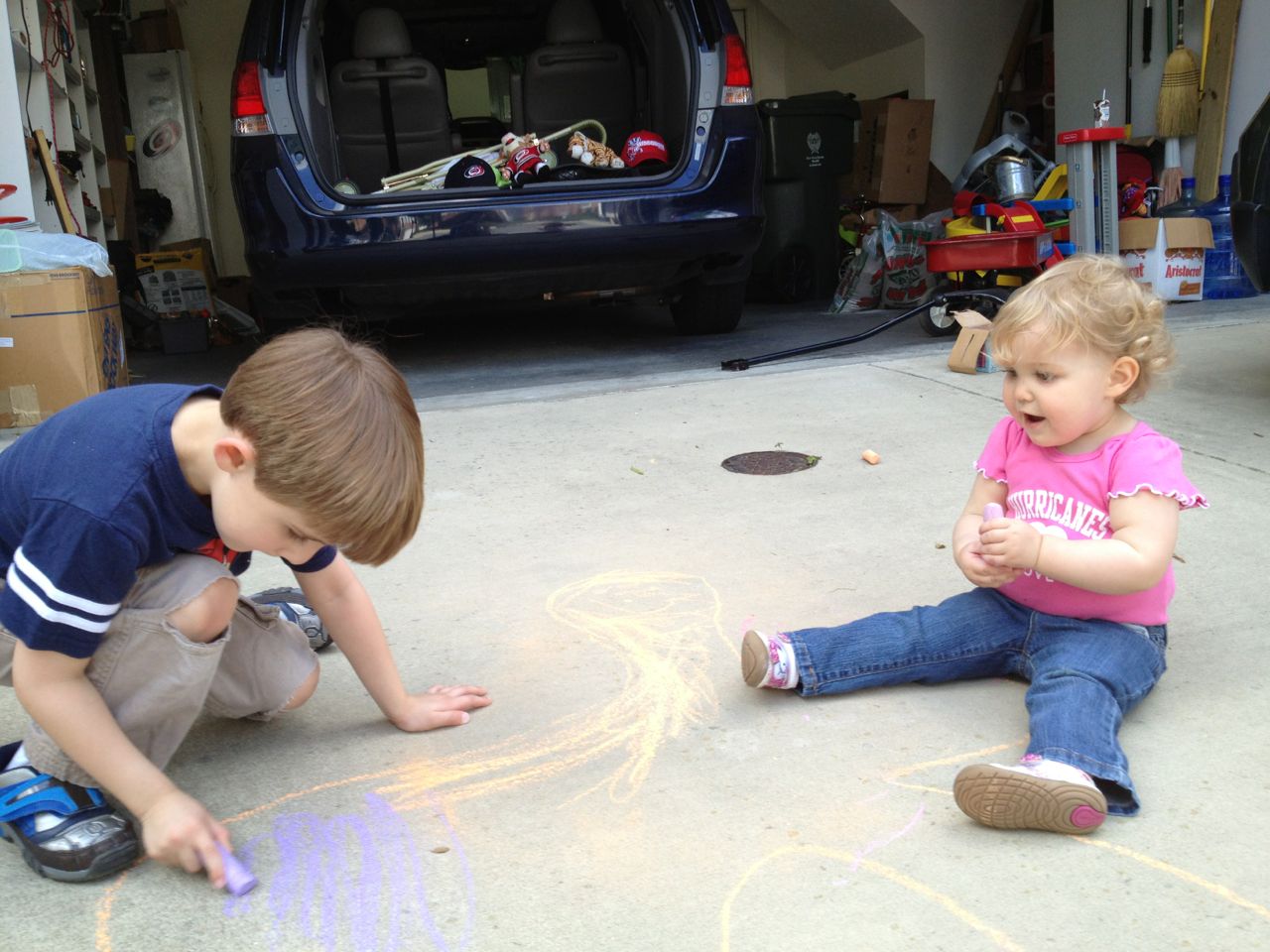 For Mother’s Day, Brandon and the kids made sure I had a lovely day! They woke me up to my first gift of blueberry pancakes and maple syrup. Brian helped get breakfast ready. Kendall was wearing her “Good Morning Mommy” PJs. Later, the kids helped Brandon refresh the sandbox by replacing all the old sand with fresh play sand. Moving all that sand was heavy, as Brian showed us to great dramatic effect! We enjoyed the new sand as well as some chalk drawing time. For dinner, we went to a nice Italian place downtown called Gravy (referring to their signature marinara, of course). We all enjoyed our food greatly, and the giant meatballs were quite a hit with the kids. When she got too wiggly, we distracted Kendall by making her into a baby babushka with the red napkins. She thought this was pretty funny, as did Brian! The waitress seemed quite taken with Brian, and kept stopping to chat with him. At one point she asked him what he thought about something, and he replied, “I think you need to go do your job.” We were all shocked (and pretty amused!) by the apparent attitude and rudeness of his comment! We had a little talk about remembering our restaurant manners, but it seemed Brian didn’t mean any harm by it. We all had a big laugh about it with the staff.