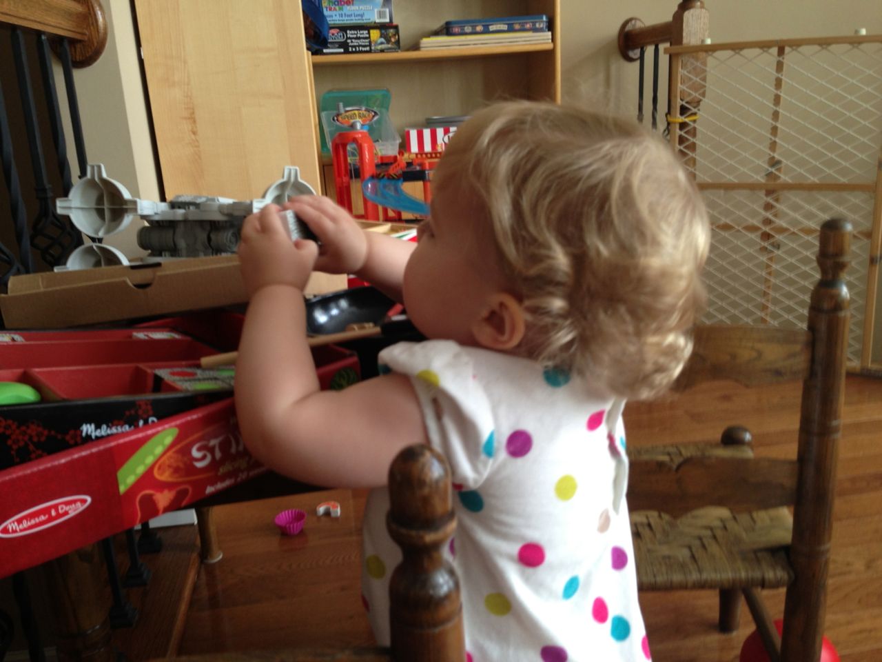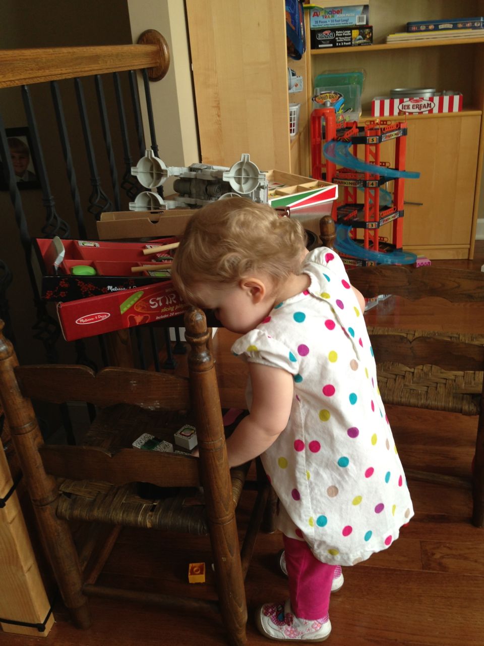 Today the kids were very cute, playing restaurant with the toy pizza, stir fry, and sushi sets. Brian did most of the work, cooking, and taking care of customers, while Kendall mostly thought the velcro chopsticks and cucumber rolls were just magical. Brian spelled out their names and “love you” on the fridge with letter magnets all by himself, I was suitably impressed! Also, yes, the kids still haven’t finished off their Easter candy.. Maybe by Halloween. 😉