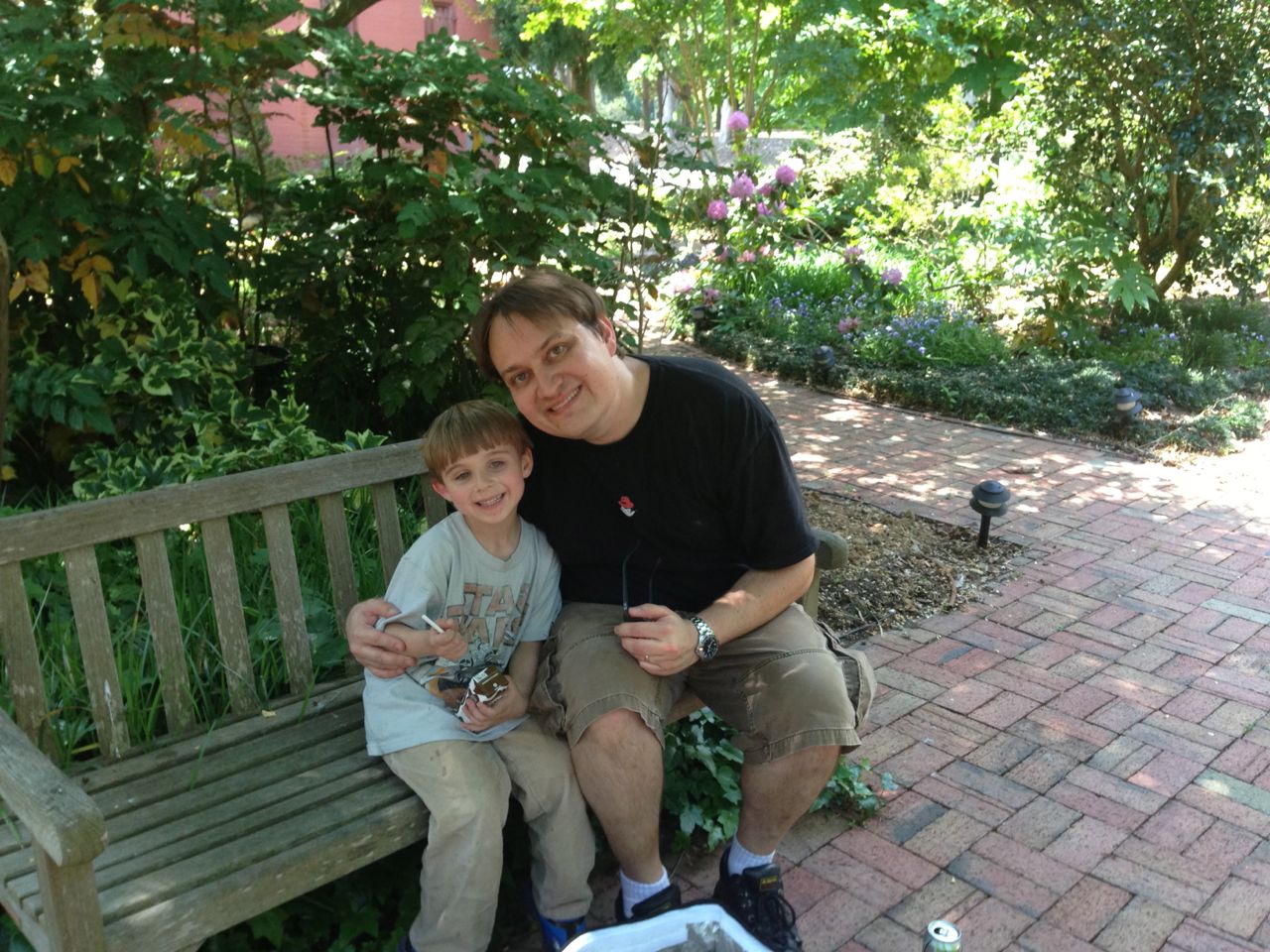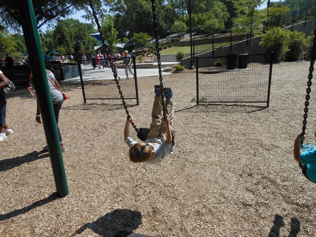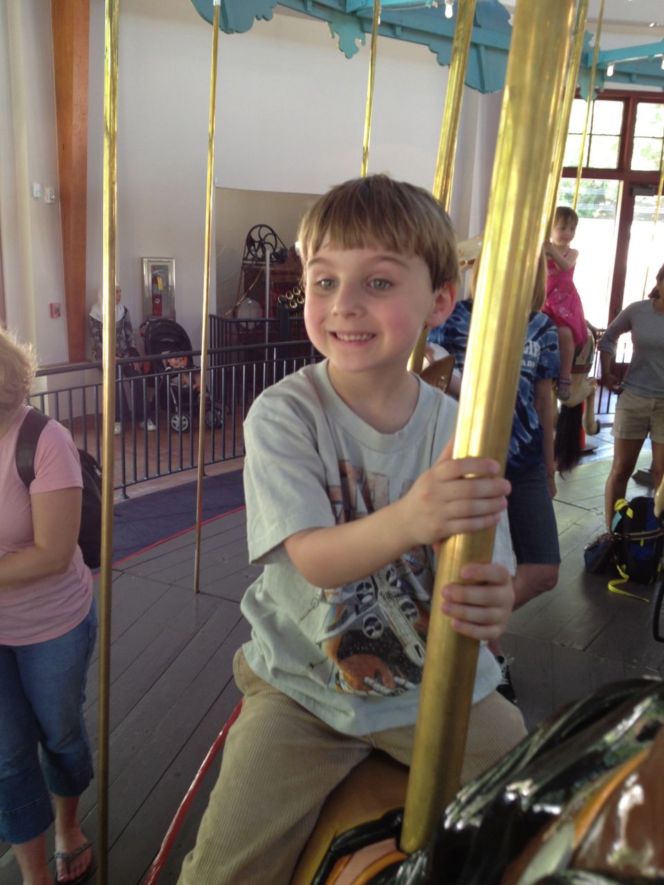Today was Brian’s final School-Family Partnership day with his Root Preschool class! Brandon and I both attended, and Brian was very excited to visit Pullen Park with us during the middle of a weekday! I think he liked having both of us to himself. 🙂 Ms. Sarah Catherine and Ms. Misty were there, and just a couple of Brian’s friends from class. Brian loved all the usual hotspots, including the train ride, mini boats, sand diggers, climbing structures, see-saws, and carousel. It was a blisteringly hot day, but that didn’t stop Brian from enjoying everything fully! After a nice long playtime, we found a shady spot and had a picnic lunch together. We’ve really enjoyed these special opportunities to spend time with Brian on days where we’d just have regular school and work days otherwise.