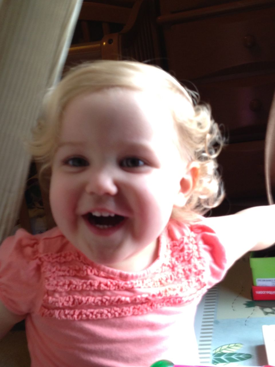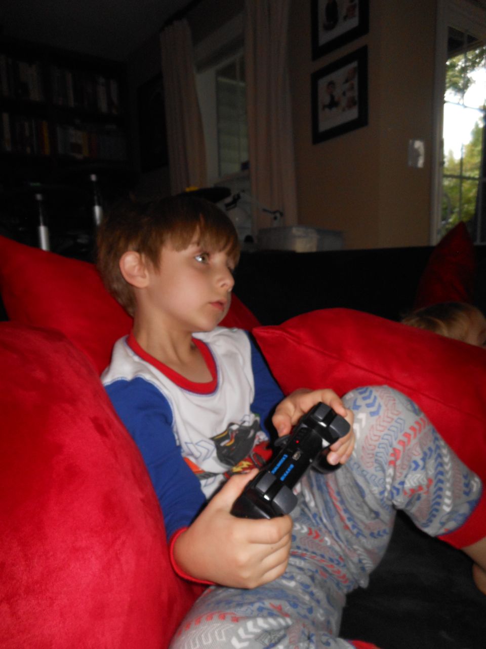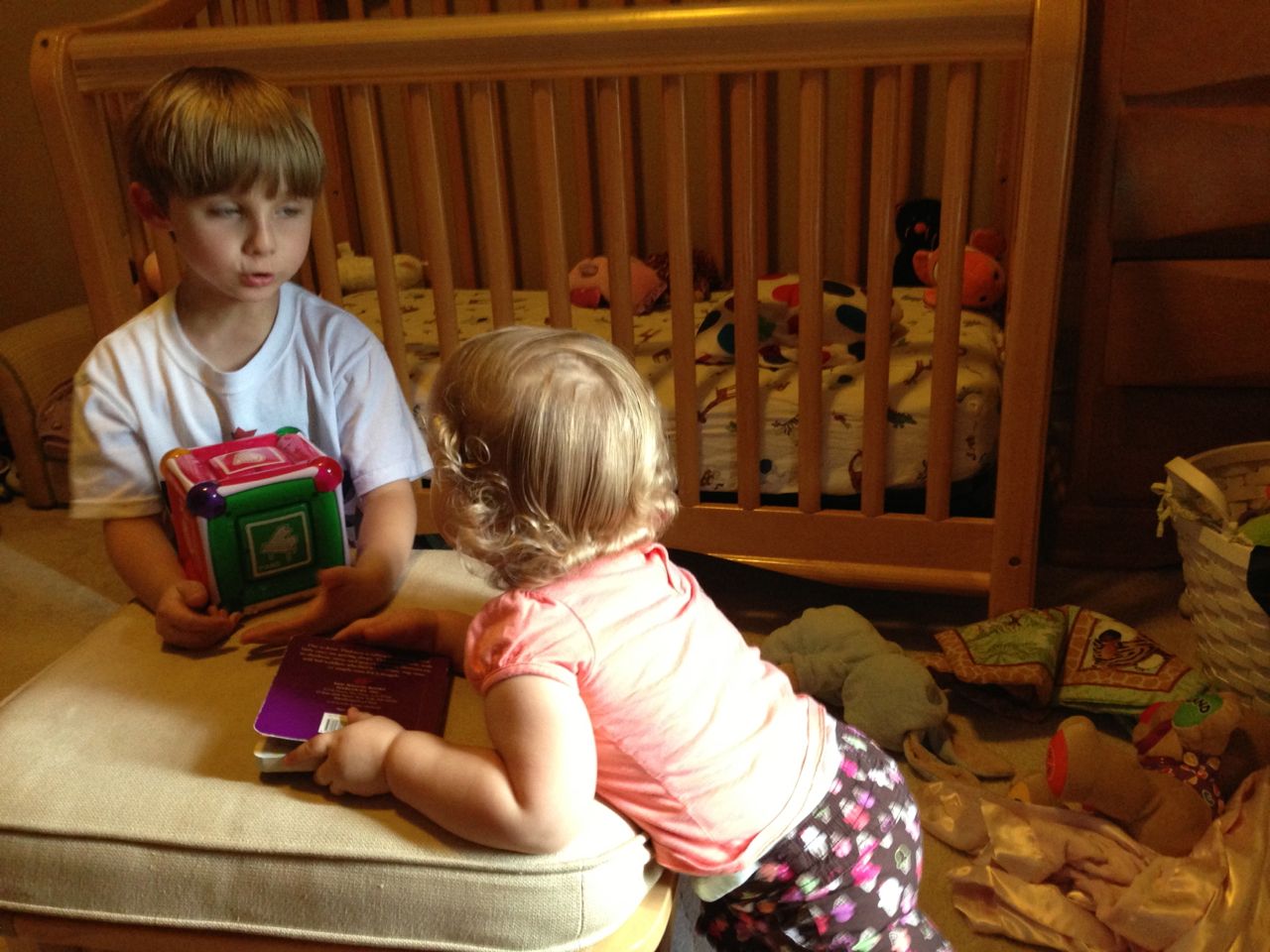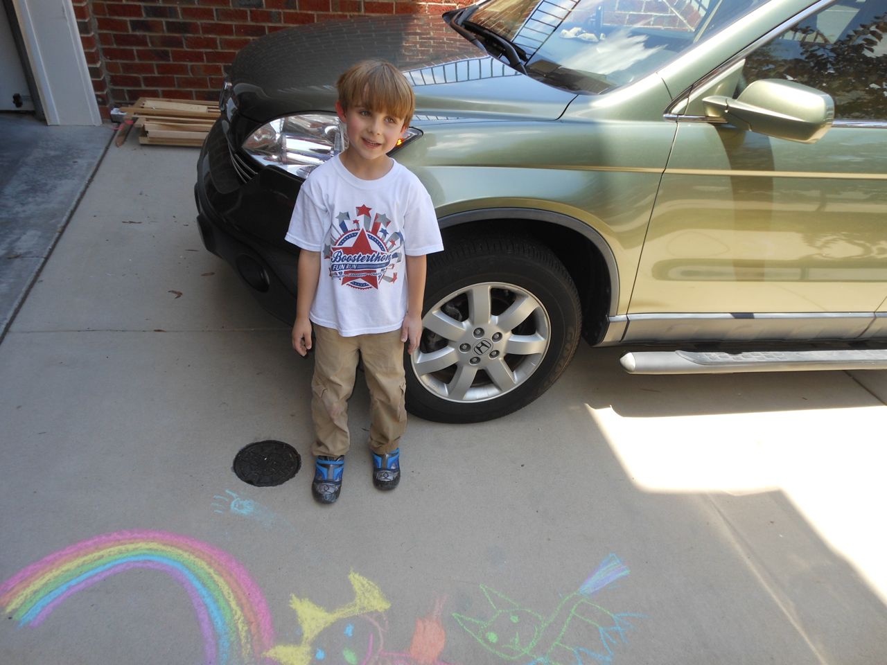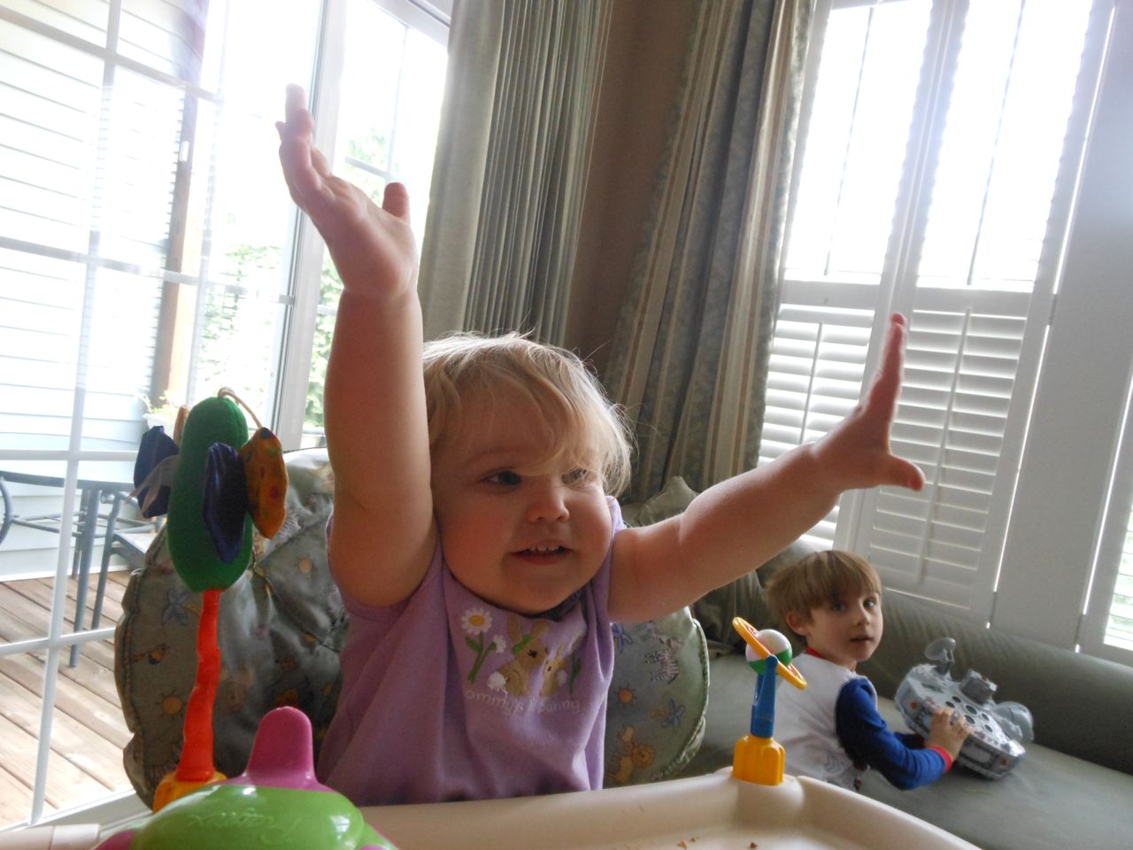 With the top floor’s air conditioning unit being broken for the past few days (why does this sort of thing always happen around a holiday?!) it finally became unbearable upstairs.. So, we had a family sleepover, together on the middle level. Brandon and I had the pull-out couch, Brian had the other couch, and Kendall (to her great displeasure) was in the pack’n’play. Not the most comfortable, but we made the most of it! The kids made all sorts of pillow forts and blanket tents, and that made it pretty fun. We brought down nightlights, one of which projects star shapes, and Brian’s Darth Vader flashlight. Kendall just loves taking off his helmet! We had fun playing a lot today, will the grill set, sidewalk chalk and bubbles, Lego Star Wars, stomp rocket, Star Wars figures, music toys… All over the map! We even brought out the Speak’n’Spell–a toy from TI that Brandon and I both had as kids, and really enjoyed. Brandon’s been working hard on the garage project, and check out that awesome wall system he’s got going now! Getting those items off the floor will help a lot. After Kendall’s nap, we decided to have our homemade popsicles (made from fruit, vanilla pudding, and orange juice) outside–they are tasty, but very messy! The kids got super sticky, and then super silly as the sugar took hold. Brian played with the stomp rocket as Kendall looked on–she got so excited every time Brian launched it! You can tell from her reaction, this was the height of entertainment! While working in the garage, Brandon found some unused “highly-available beverage helmets” that celebrated a Red Hat Cluster Suite release a few years ago. We tried to get Kendall to pose with one on, but she wasn’t exactly into the helmet look today. 😉 All in all, a super fun summer Sunday.