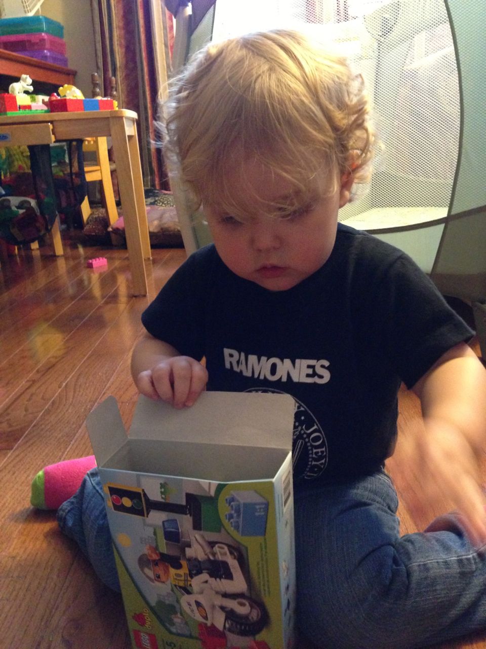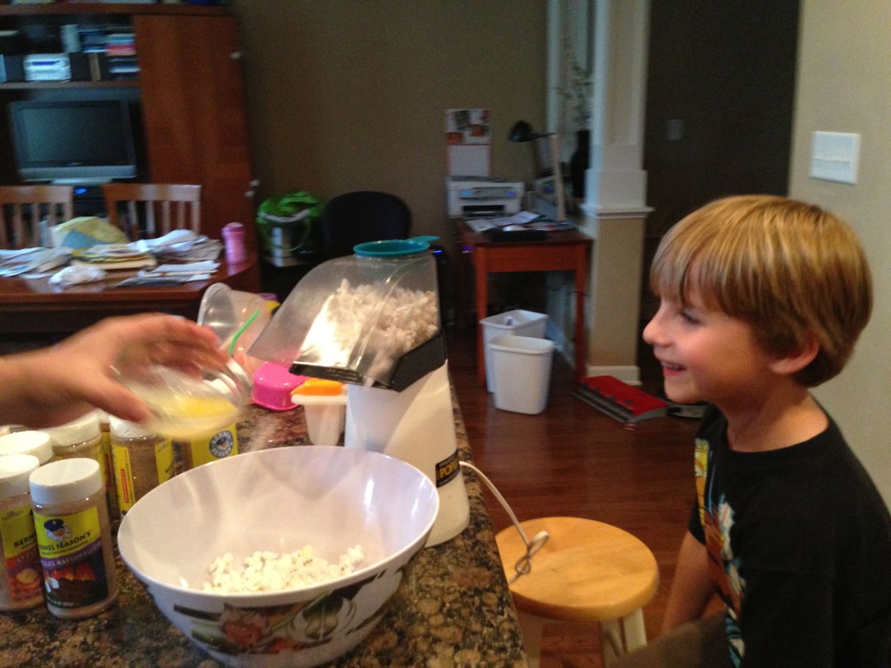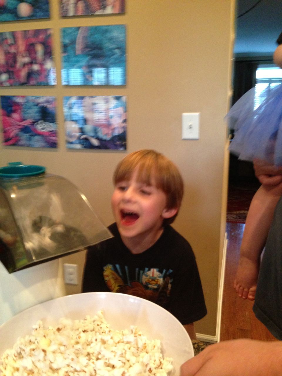 After the open house, Brian was off to skating lessons, and I had some playtime with Kendall. I’d picked up a Lego Duplo policeman and motorcycle for her, which she really enjoyed! When he got home, Brian liked it too–especially the traffic light and cone accessories! After the gas station’s motorcycle was so popular with them, I could tell that we needed to have two Duplo motorcycles in the house.. 😉 Later on, we decided to break out the air popper and make some popcorn! It had been awhile, so Brian didn’t really remember how it worked. He was so excited to make a huge bowl of popcorn! We thought, well, popcorn like this just begs for a movie, and since we hadn’t seen Toy Story since visiting Grandpa Roger, we thought we’d watch it again–especially because Brian didn’t remember where his Pizza Planet car came from! After a quick double bath, the kids were off to bed. Whew! Busy days, as usual. 😀