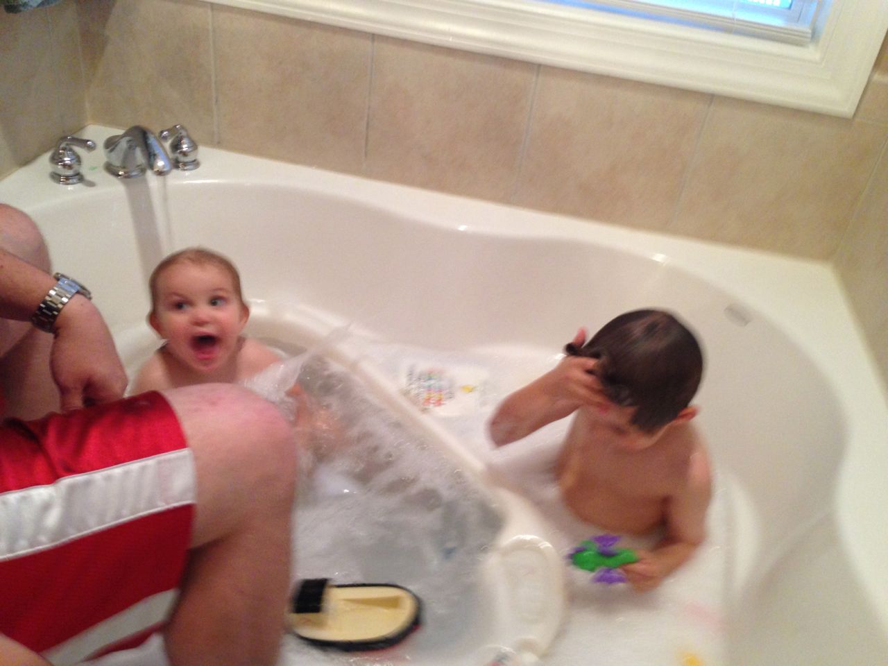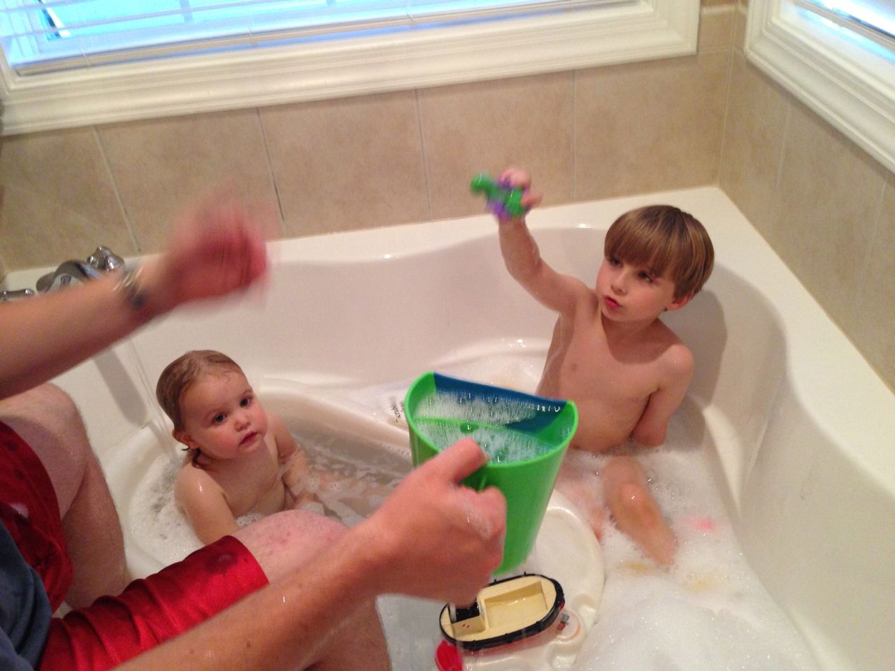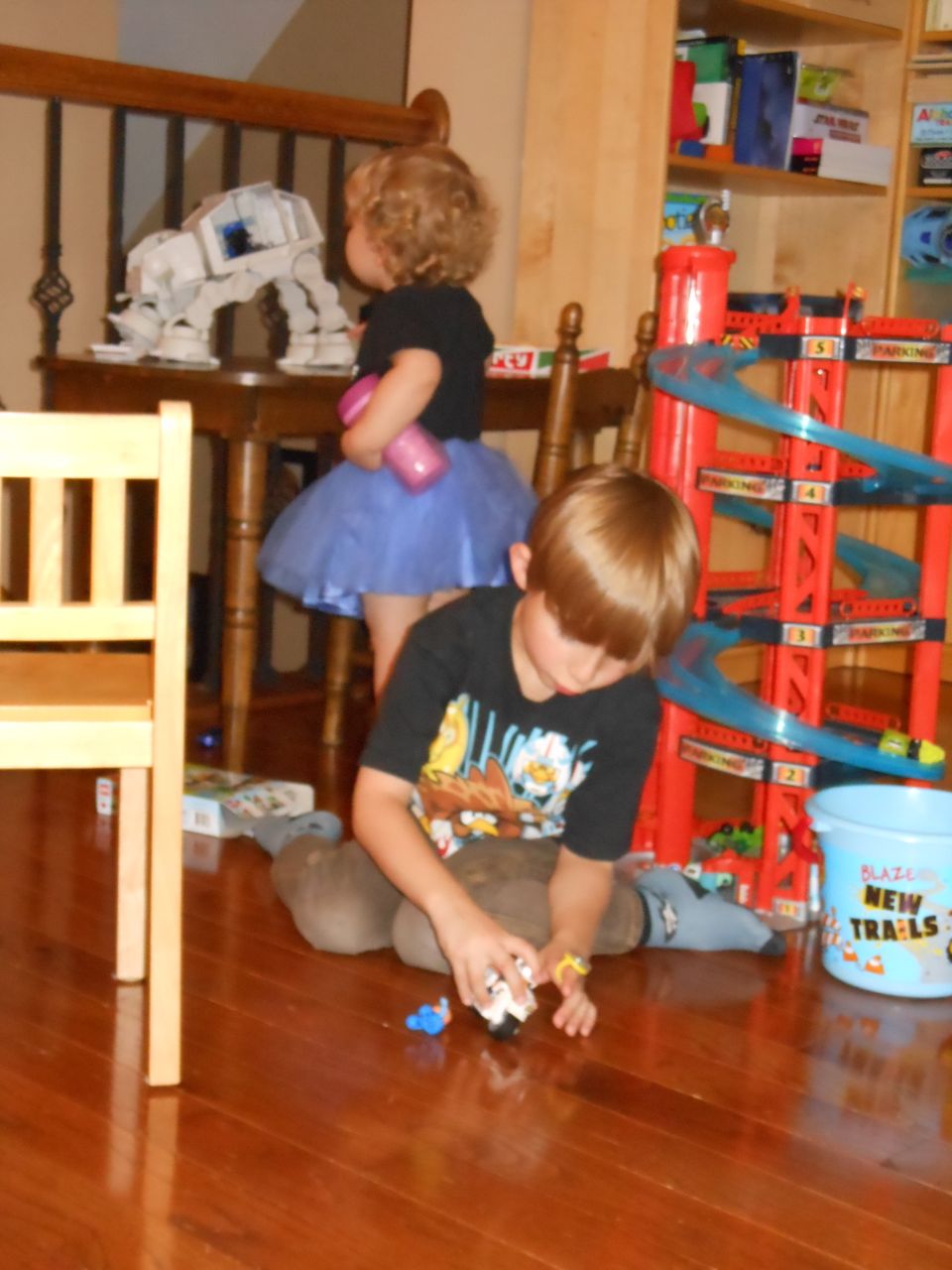 After the open house, Brian was off to skating lessons, and I had some playtime with Kendall. I’d picked up a Lego Duplo policeman and motorcycle for her, which she really enjoyed! When he got home, Brian liked it too–especially the traffic light and cone accessories! After the gas station’s motorcycle was so popular with them, I could tell that we needed to have two Duplo motorcycles in the house.. 😉 Later on, we decided to break out the air popper and make some popcorn! It had been awhile, so Brian didn’t really remember how it worked. He was so excited to make a huge bowl of popcorn! We thought, well, popcorn like this just begs for a movie, and since we hadn’t seen Toy Story since visiting Grandpa Roger, we thought we’d watch it again–especially because Brian didn’t remember where his Pizza Planet car came from! After a quick double bath, the kids were off to bed. Whew! Busy days, as usual. 😀