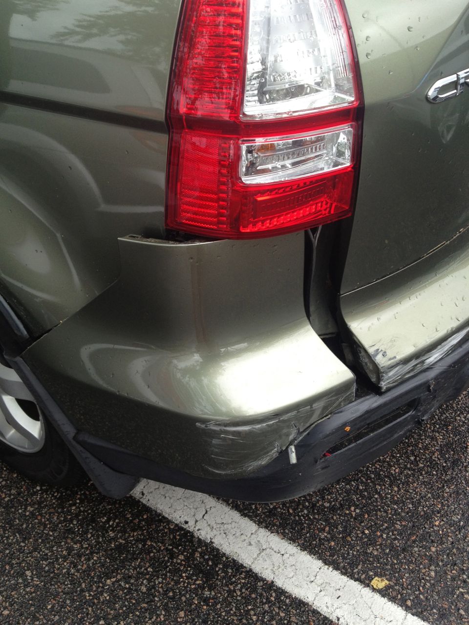 First things first–everyone is okay. That’s the important thing. 🙂 This afternoon there was a bit of a deluge in Raleigh, with some flash flooding. Brandon went to pick up the kids in my car, remembering to avoid low-lying areas that might flood on the way to the school… But, on the way home, muscle memory took over and he forgot and went the usual way–right by Crabtree Creek (notorious in this area for flooding). The road was covered in water (it was actually much worse than what the traffic cam shows, according to Brandon) and people were making some, let’s say, bad decisions. Brandon stopped to avoid someone who was swerving out in front of him–but someone behind him was less observant, and my car got rear-ended. 🙁 I was home cooking dinner when I got the call, and just turned everything off and went to pick up the kids. The parking lot at the mall was filled with cars and police from many other accidents that had happened that afternoon. Everyone was a little bit shaken, but there were no injuries. My car will need some expensive body work, which the insurance should cover (eventually), but we’ll be without it for awhile. Brandon is writing up a very detailed report for the police, and Brian now has a very strong real-world example of why we must always, always wear our seat belts. I’m just glad everyone is okay. 🙂