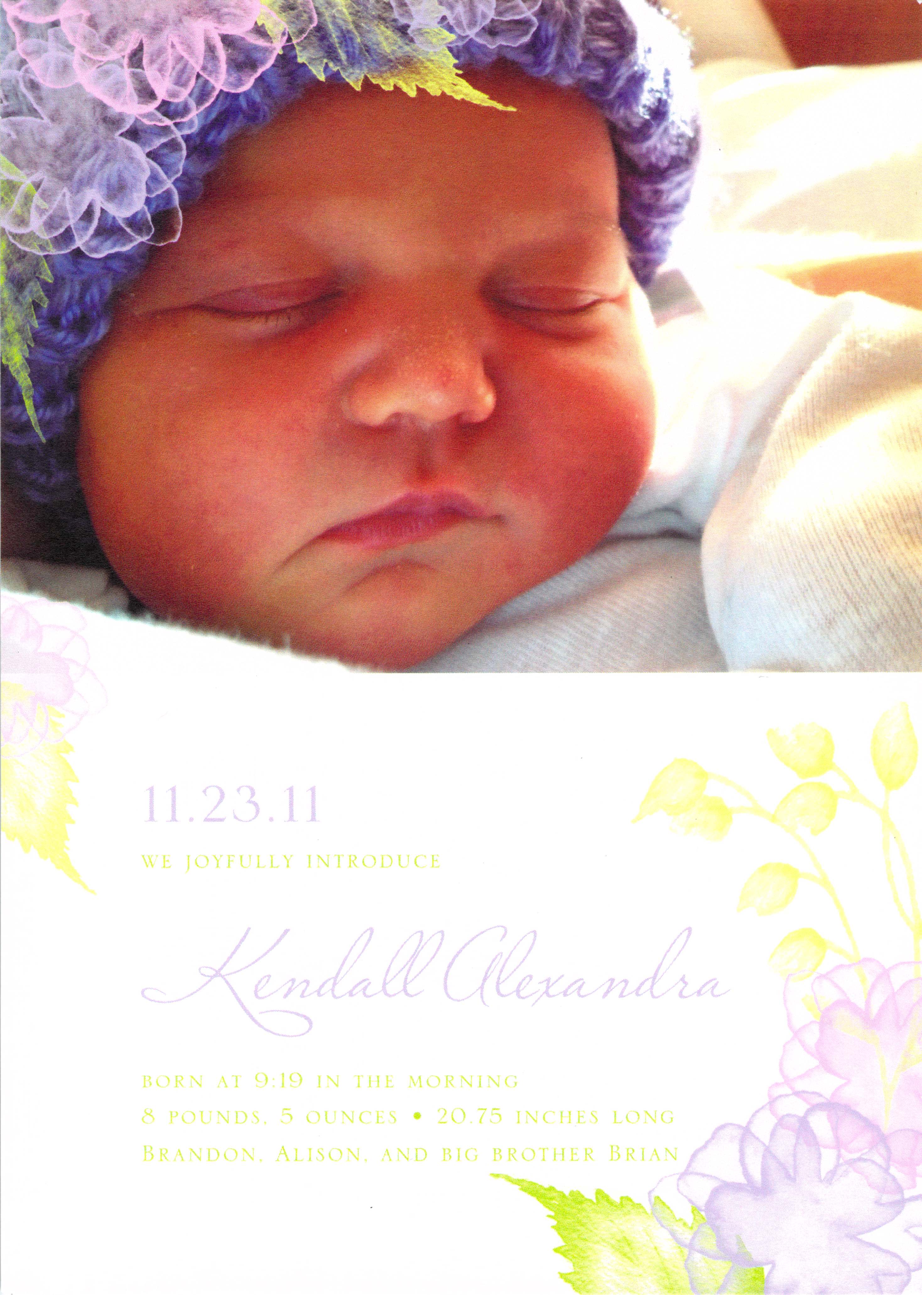 - Kendall’s Birth Announcement (front)